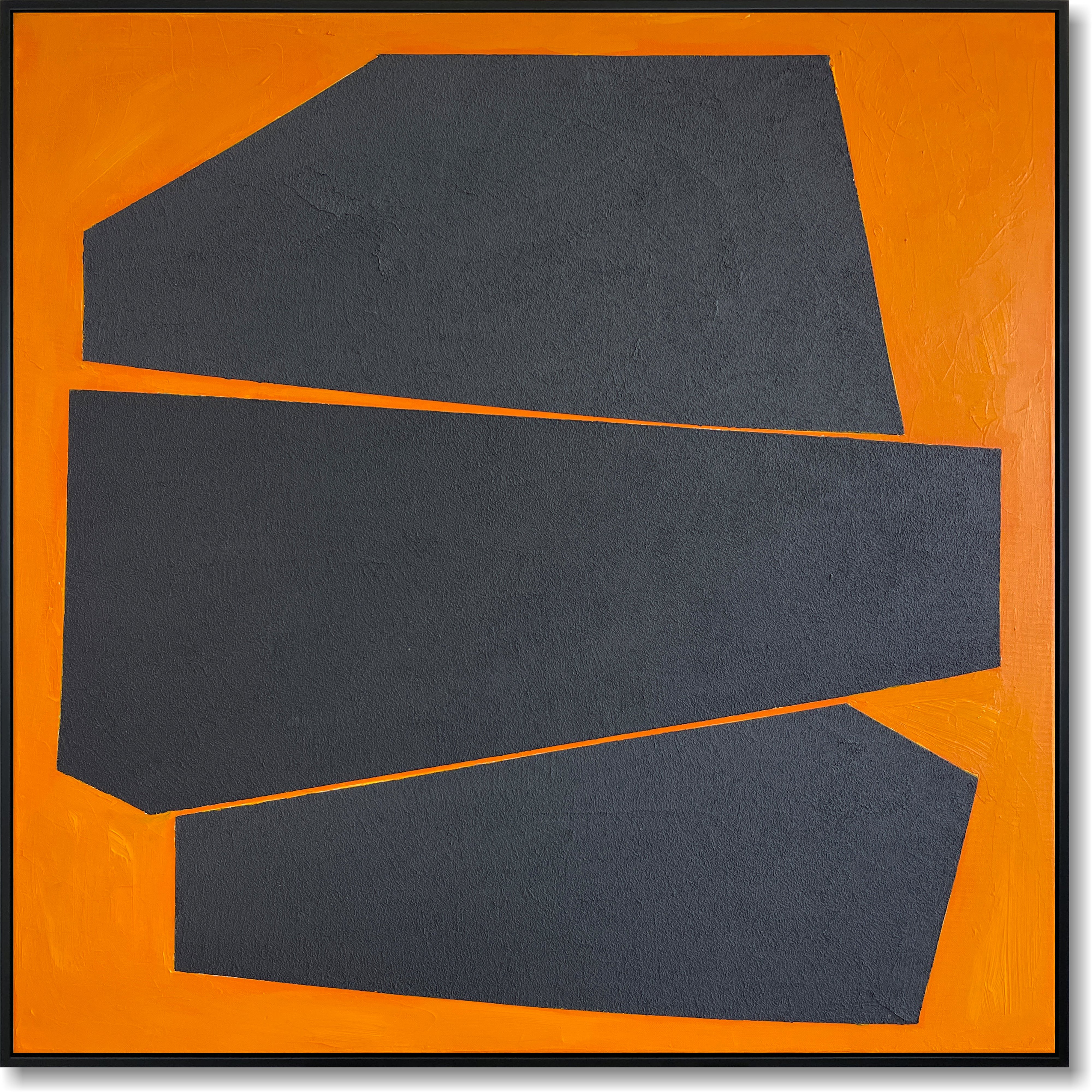 Introduce a bold statement to your home decor with 'Phantom.' This modern wall art features striking geometric shapes in vibrant orange and deep black, creating a stunning contrast that is perfect for contemporary and minimalist spaces. This large canvas adds a touch of sophistication and modernity, making it an ideal statement piece for any room. Elevate your home decor with this eye-catching geometric painting, designed to captivate and inspire.