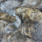 This abstract painting in grey and gold colors is a celebration of subtlety and splendor, inviting viewers to immerse themselves in the nuanced interplay of tones and textures. It encourages contemplation and appreciation for the sophisticated beauty that emerges from the marriage of these two timeless hues.