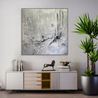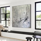 لوحة تجريدية كبيرة من القماش الفني الأصلي أسود أبيض نسيج جدار الفن | FOGGY MORNING