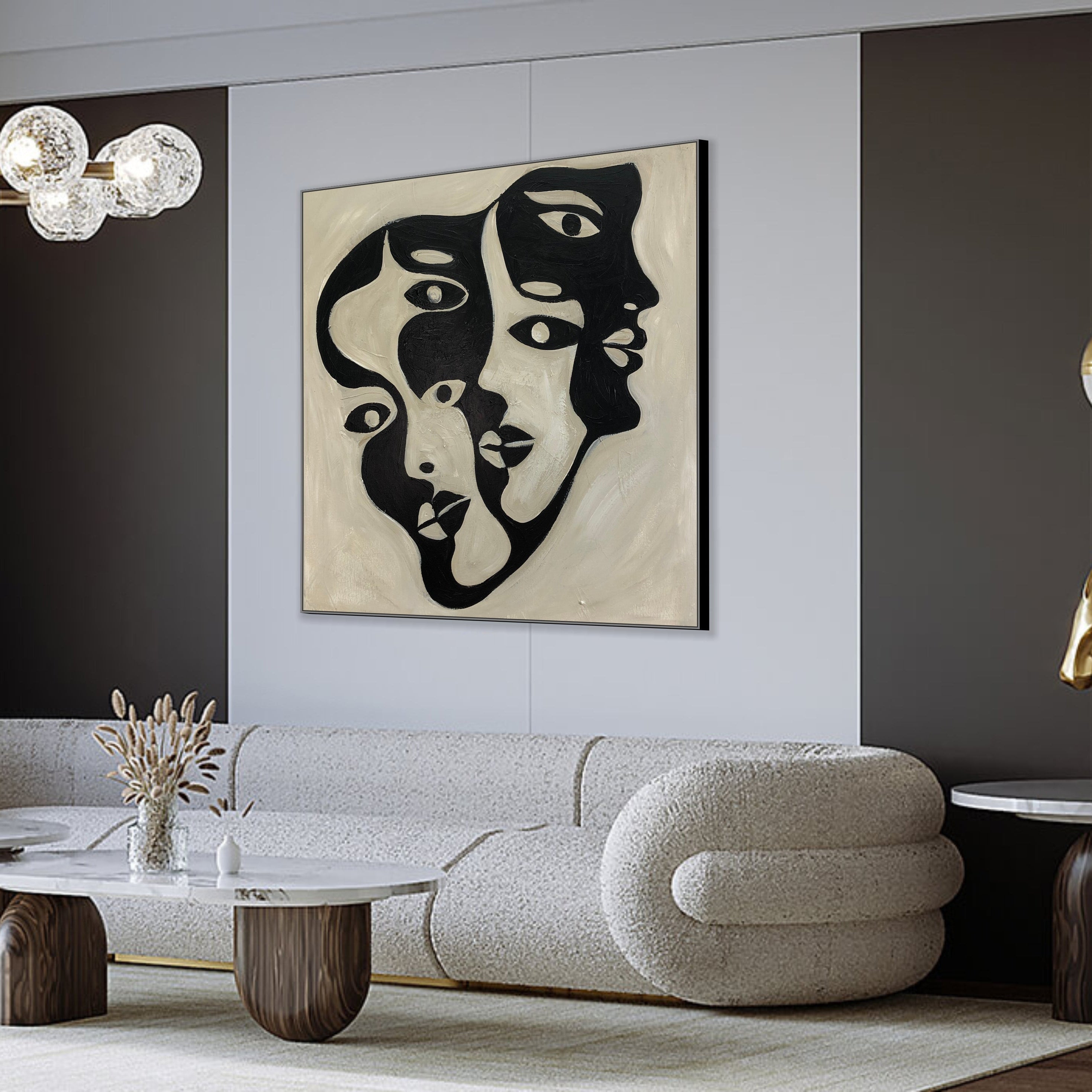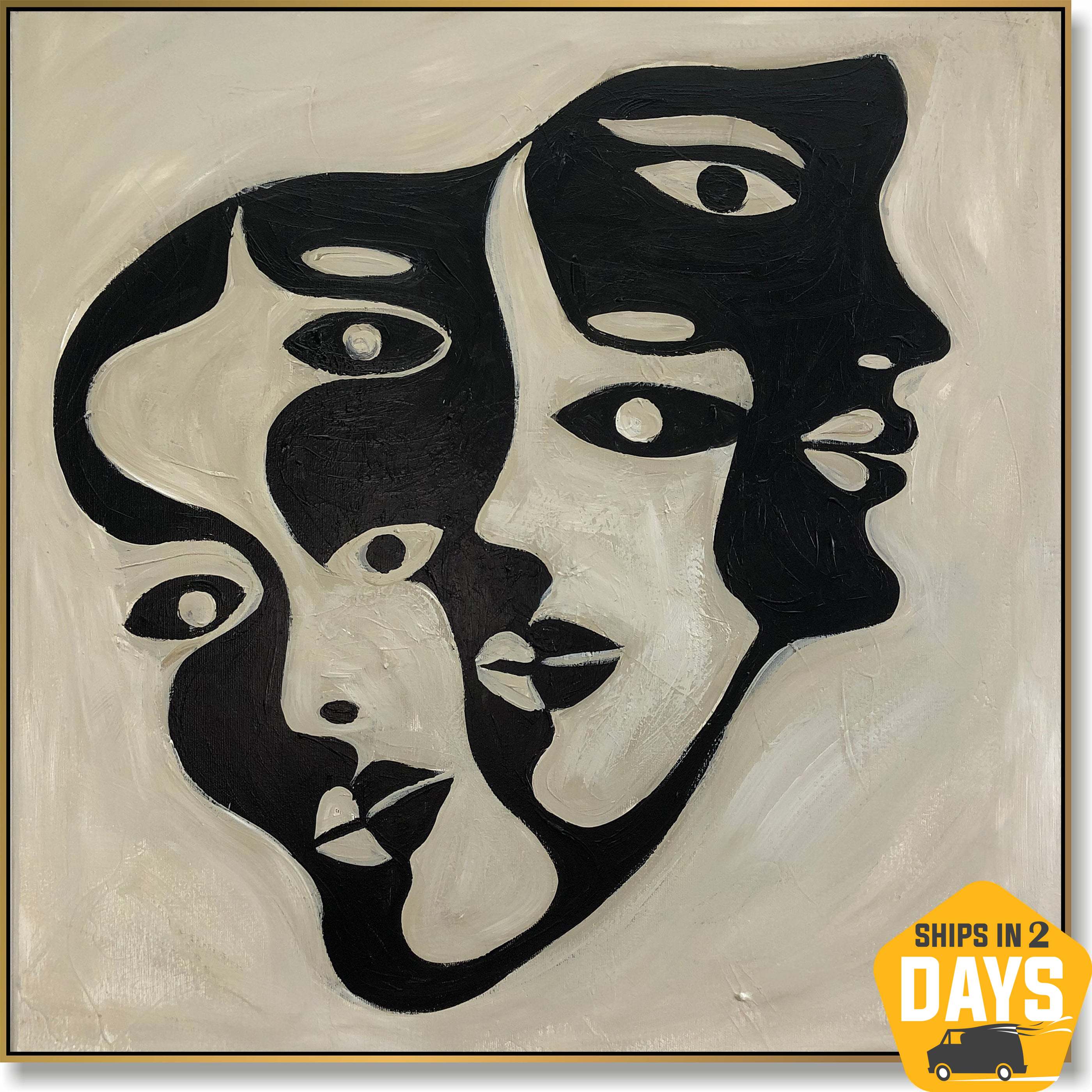 Explore the captivating world of "Surreal Expressions," an abstract black and white painting that delves into the realm of human emotions and duality. This modern artwork features minimalist and surreal faces, capturing the essence of expressionism. Perfect for lovers of contemporary and monochrome art, this piece adds a touch of intrigue and sophistication to any space. Embrace the beauty of abstract concepts and surreal visions with this unique and stylish artwork.
