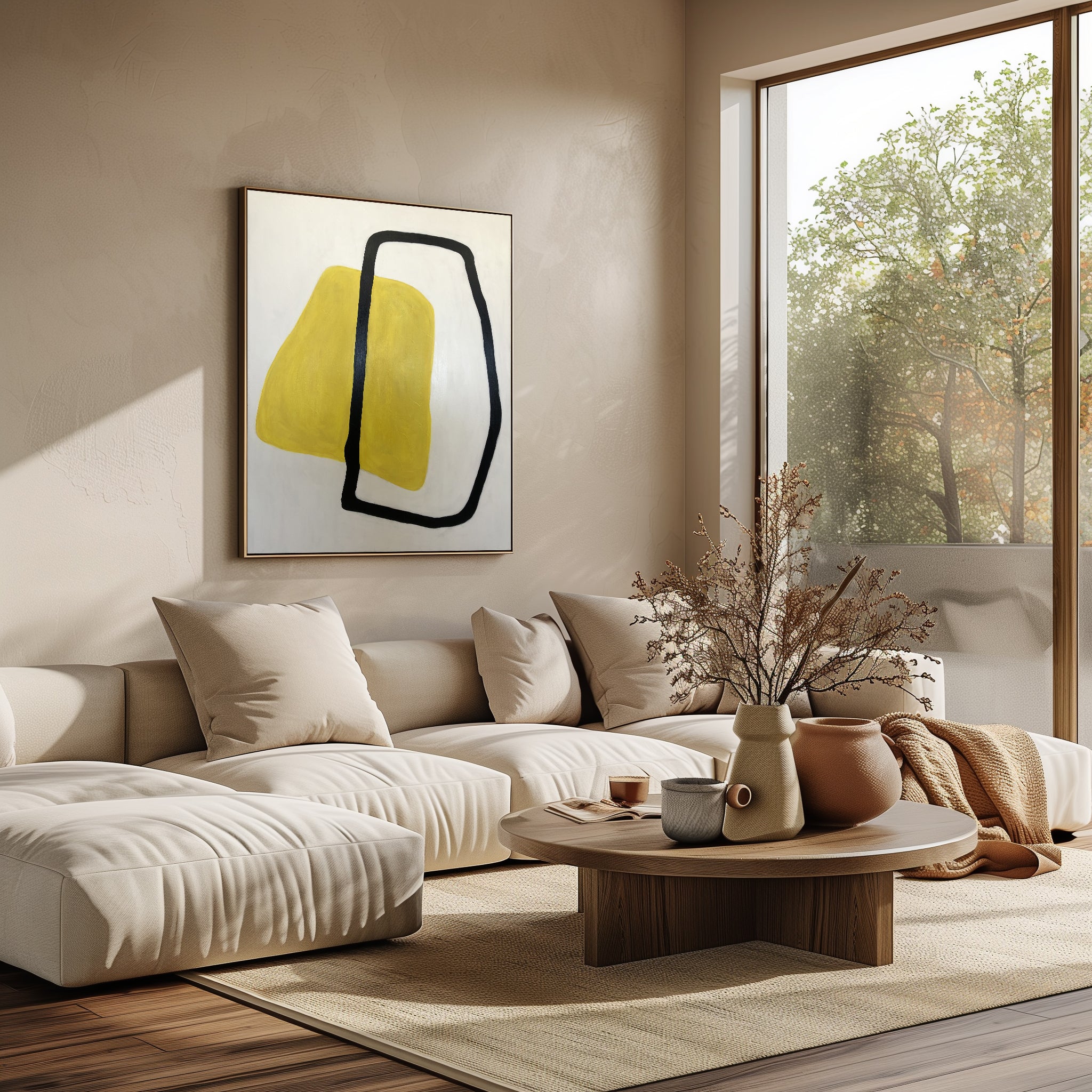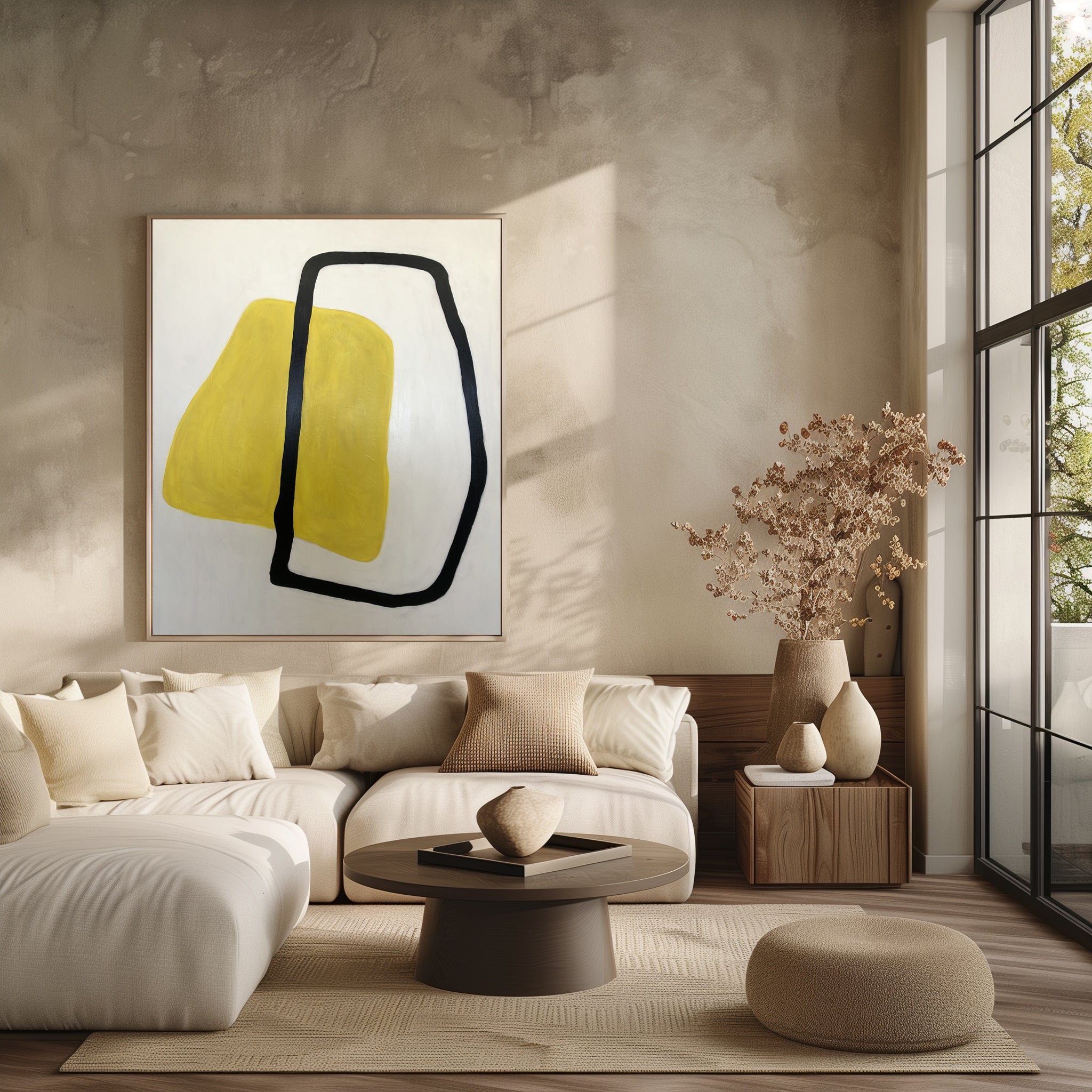 Boundless Harmony is a striking piece of minimalist abstract wall art that combines bold geometry with vibrant contrast. Featuring a textured yellow form intersected by a free-flowing black contour, this modern painting evokes balance, energy, and simplicity. Perfect for contemporary interiors, this abstract artwork enhances living rooms, offices, and creative spaces with its clean lines and sophisticated color palette. Ideal for art lovers seeking unique modern decor, Boundless Harmony captures the essence of minimalist design while making a powerful visual statement.