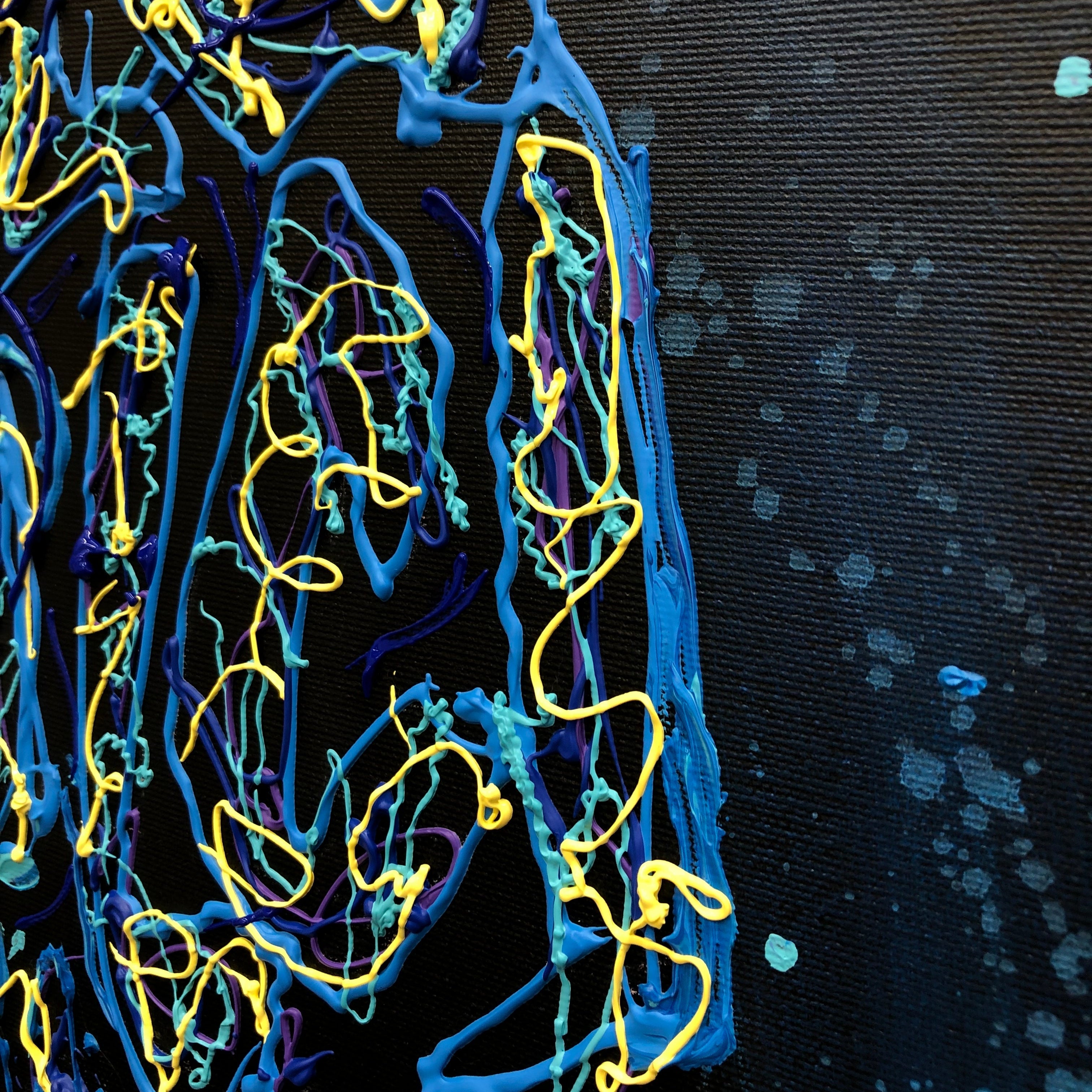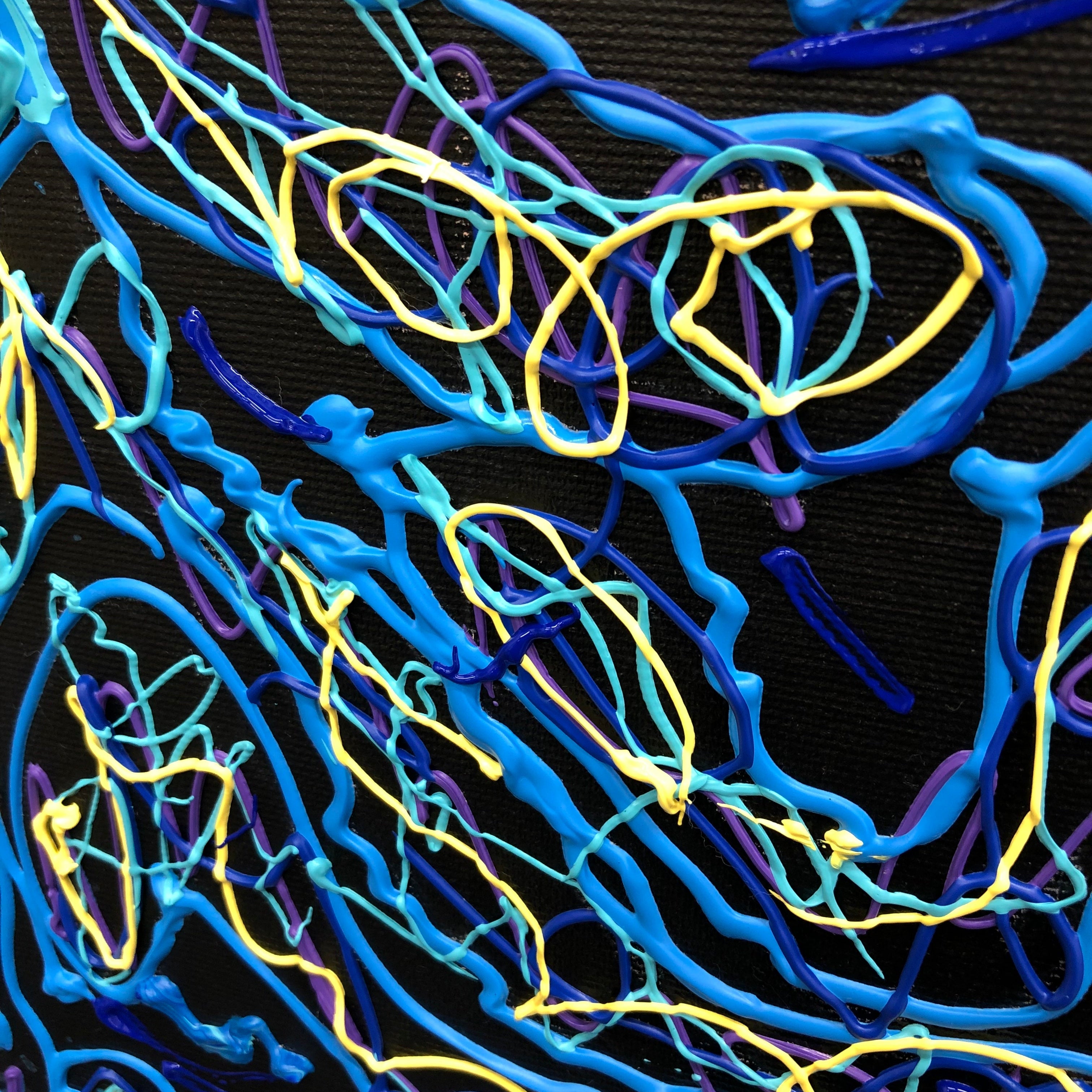 A striking abstract brain painting with electric blue neurology motifs, perfect for offices, clinics, and modern homes. Hand-painted and truly unique. Add this statement artwork to your space — shop now!