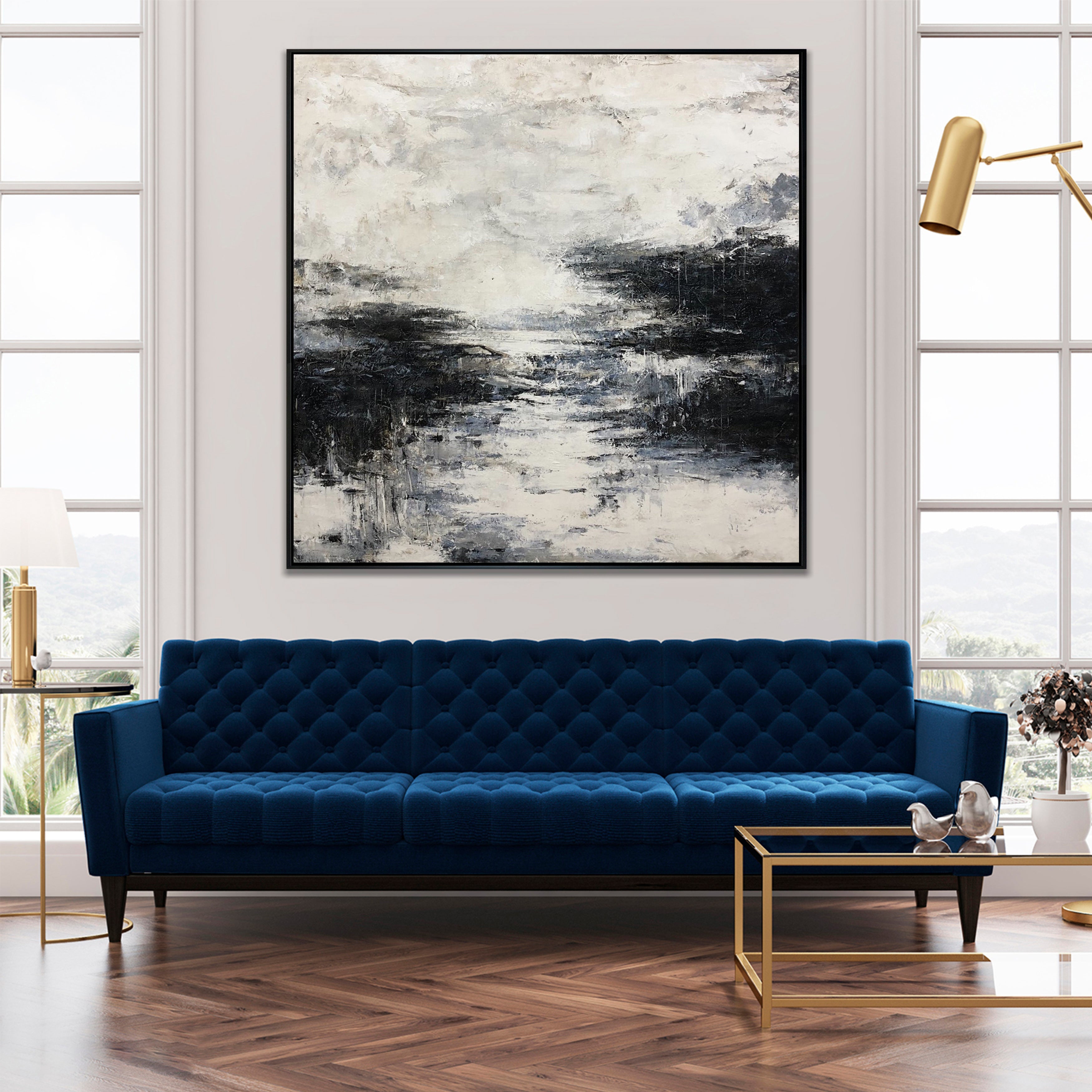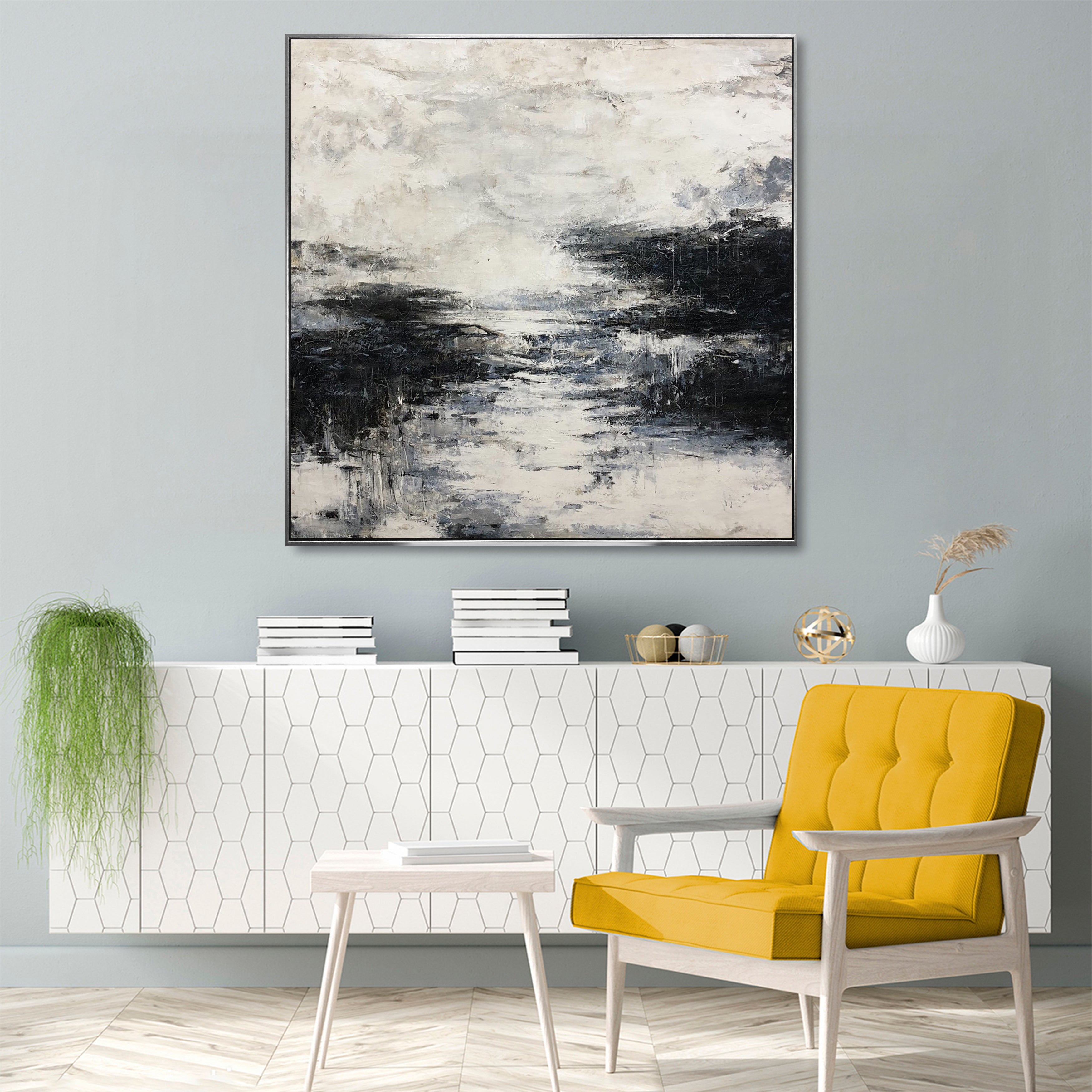 When choosing an abstract painting, consider the dominant colors and textures already present in your home’s décor. For modern interiors, look for bold geometric designs or minimalist pieces, while traditional homes might benefit from softer color palettes and more fluid shapes. We can assist you in selecting pieces that enhance your home's style, whether you're looking to add contrast or harmonize with existing elements. If you're undecided, we offer free visualizations to help you see how a painting would look in your space.