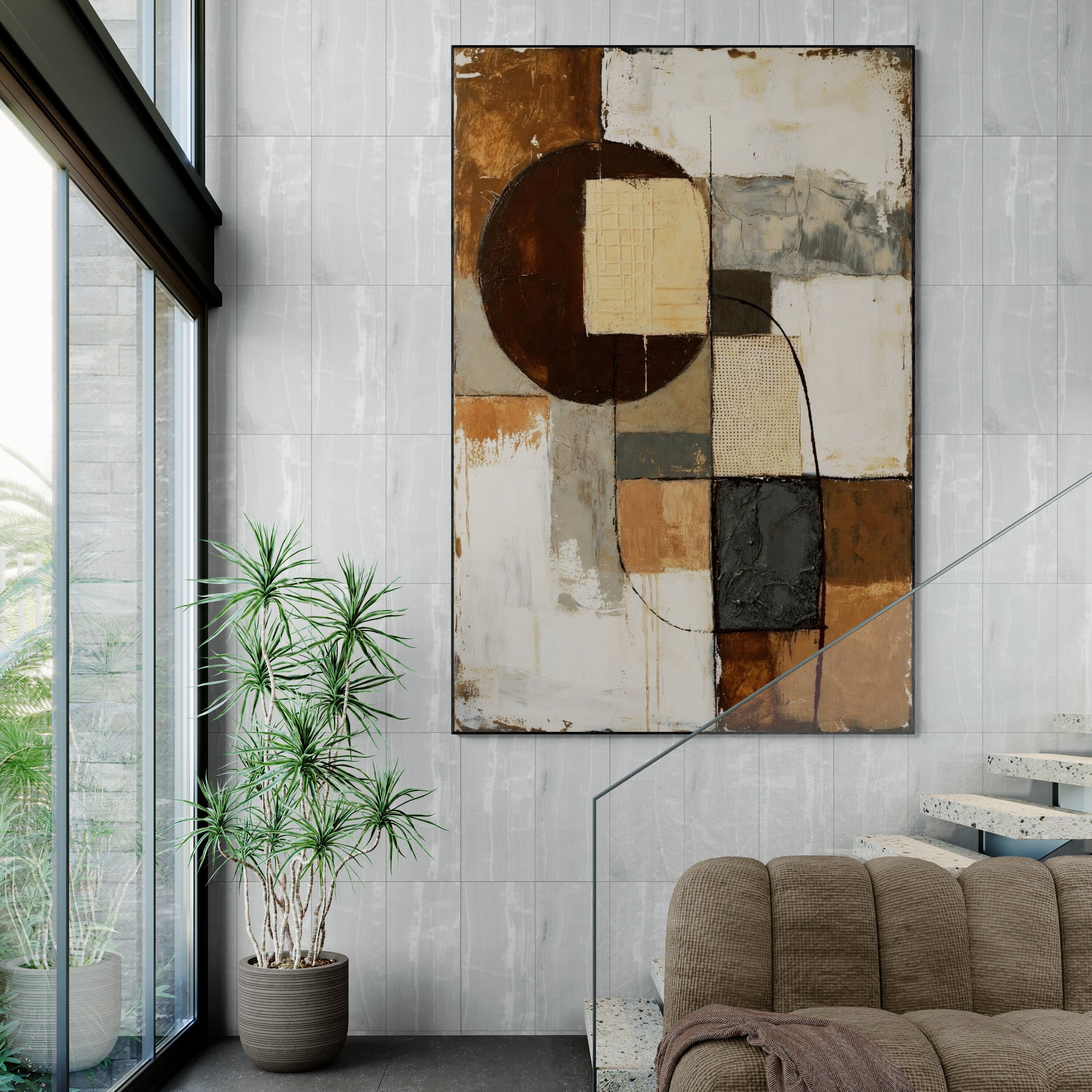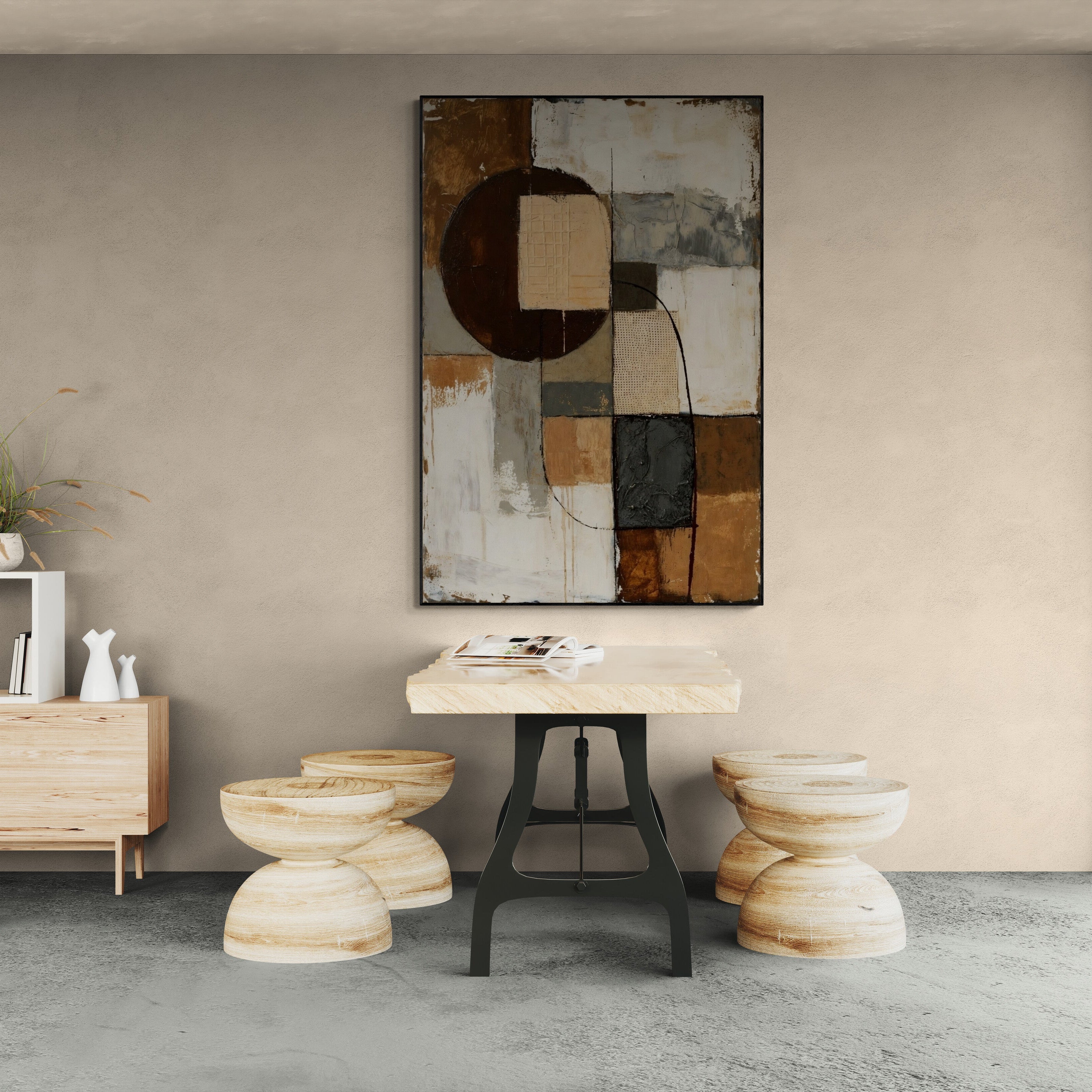 Warm neutral abstract painting with rich texture and earthy tones, perfect for modern or boho interiors. A stylish statement piece for any space. Order today!