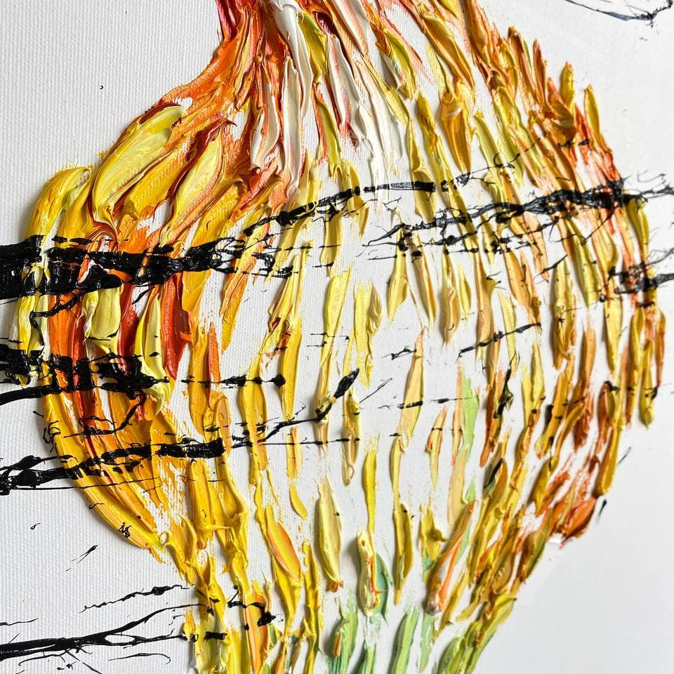 “Creating art objects, I worked in lot of techniques until I found something that helped my imagination to reflect on the canvas. This is an impasto technique. I paint the image in large strokes adding volume to the surface of the canvas.”