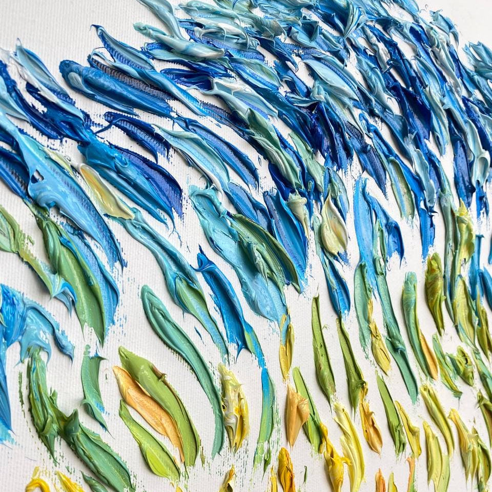 At the very beginning I was a bit afraid of making my art in public, it was something intimate for me, I didn`t want another people to follow the movements of my brush, but then I let these thoughts go and went back to what I loved in childhood: the sea, and the marine creatures, that`s why I was taking canvas and doing my art on the beach. I dreamed of studying art and I worked hard to pass the entrance examination and I entered Kyiv Academy of Arts and Design by Mikhail Boychuk”