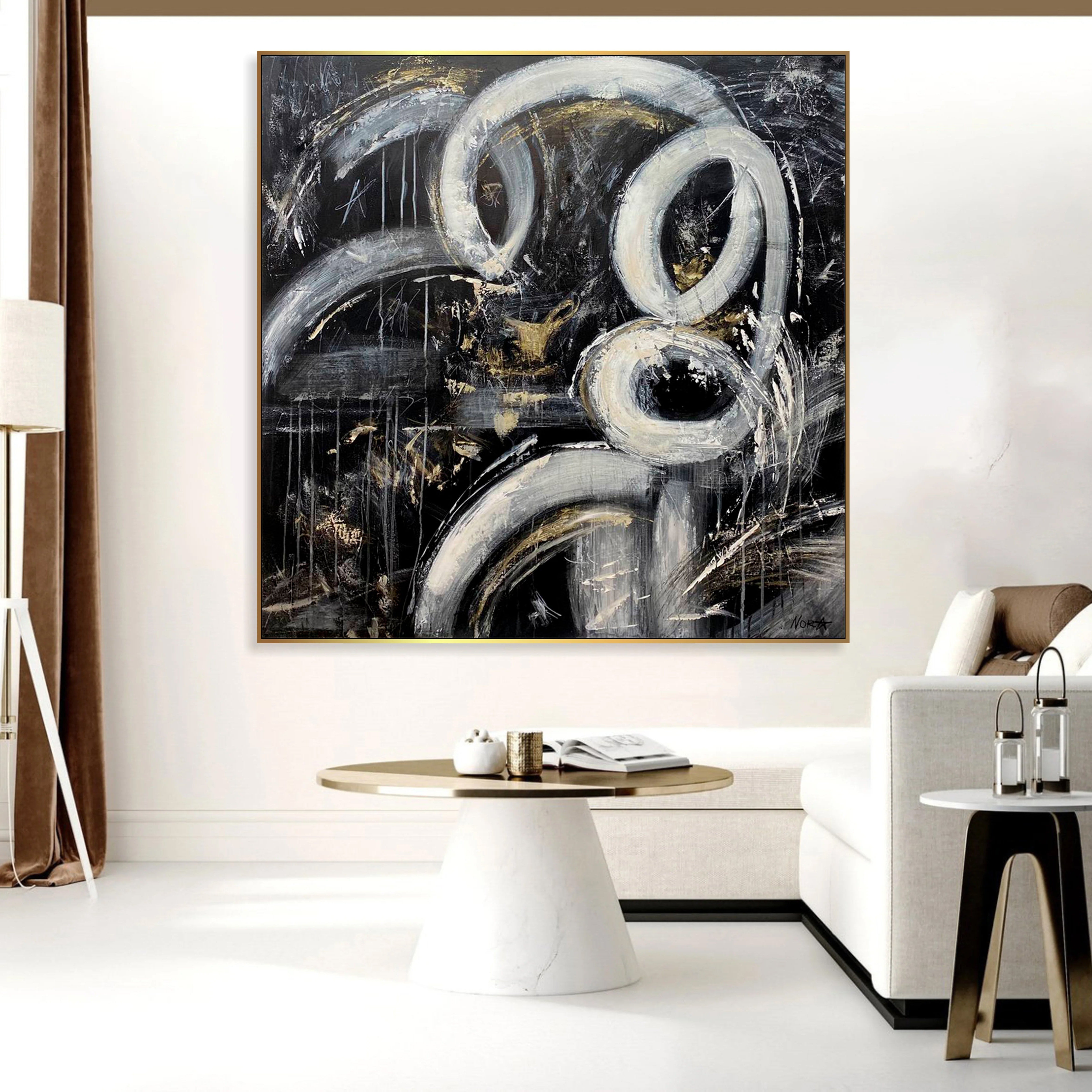 Are the square abstract paintings available in different sizes, and how do I decide which size is best for my space?Square abstract paintings are available in a variety of sizes, ranging from 26"x26" to as large as 114"x114". To decide which size is best for your space, consider the dimensions of your walls and the overall scale of your room. Larger paintings can serve as focal points, while smaller ones can create a cohesive look when grouped together. Aim for a balance that complements your existing decor and doesn’t overwhelm the space.