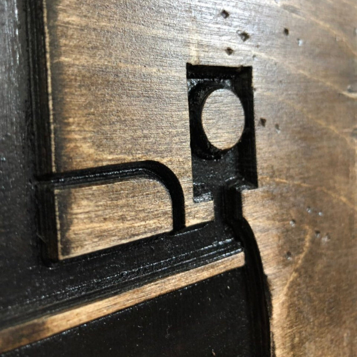 Materials: Stainless steel Staples, Wooden panels, Varnish