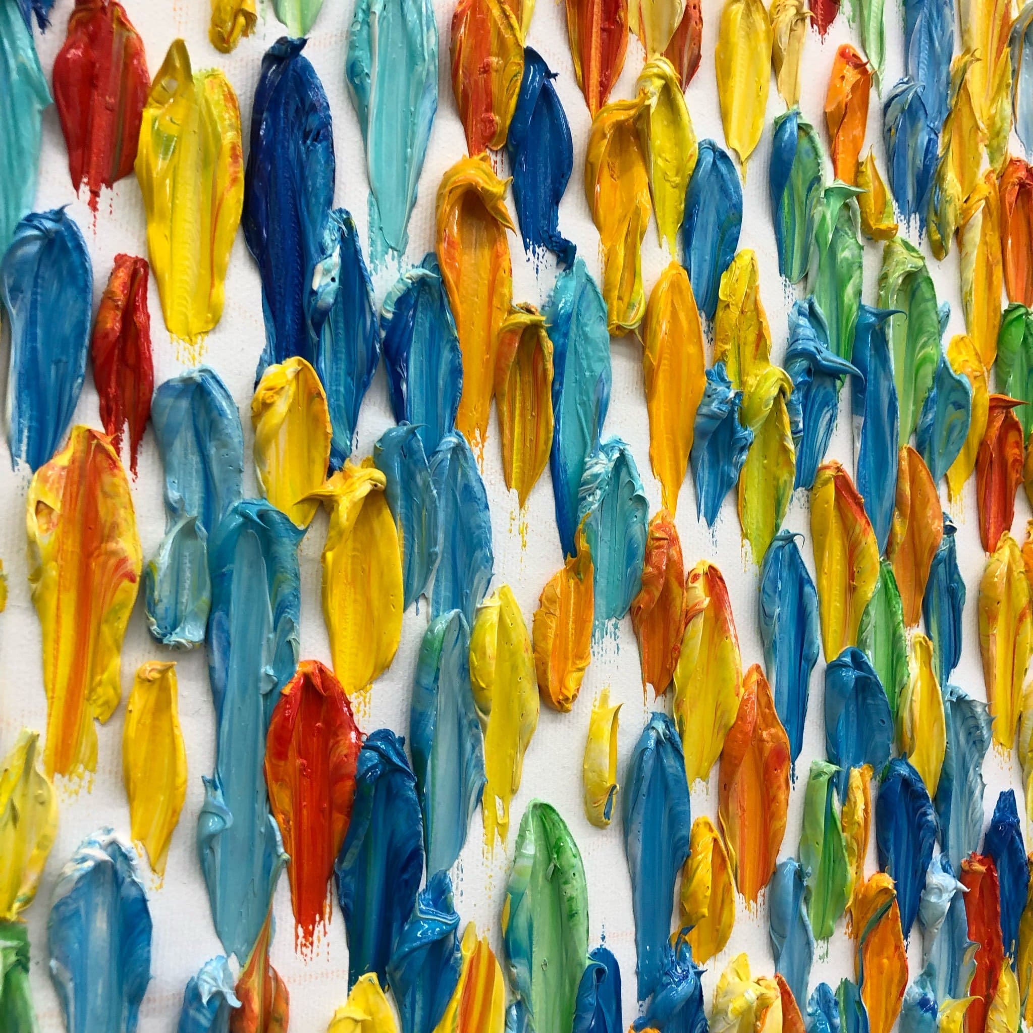 While the artist may have used industrial materials to create the textural effects, the overall impression is one of an underwater world teeming with life.