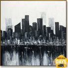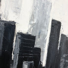 In this captivating black and white composition, a dreamscape of unlikely abstract houses unfolds across the canvas. The monochromatic palette adds a sense of mystery and timelessness to the scene, creating a stark yet enchanting contrast. Towering structures, whimsically distorted, reach into the void with unconventional angles and improbable perspectives.
