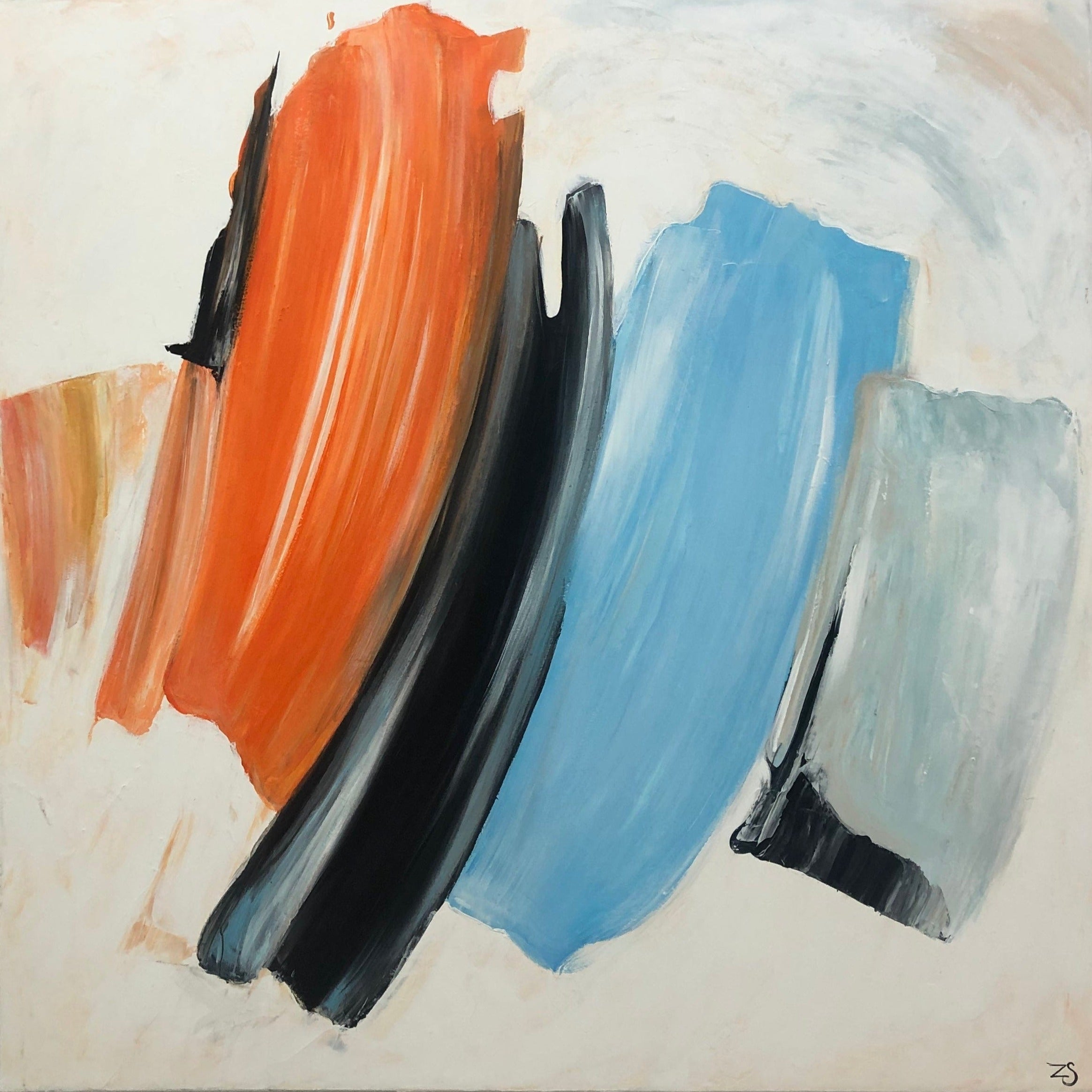 Lines of Action is a captivating abstract oil and acrylic painting that is sure to add a vibrant touch to any room in your home. Featuring bright and bold colors such as orange, blue, black, and gray, this eye-catching painting is sure to catch the attention of all who view it.