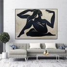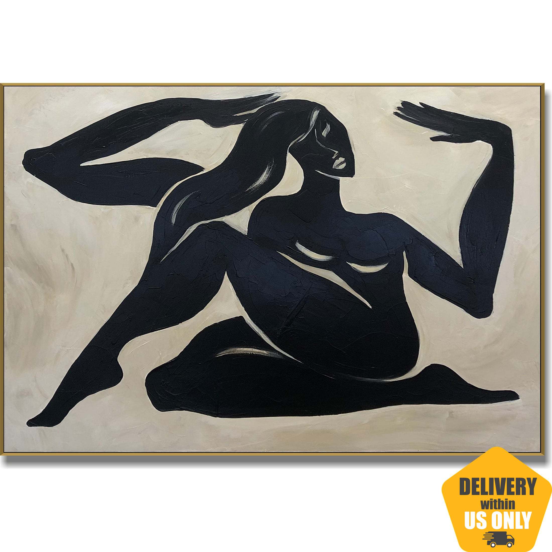 The abstract representation of the woman is a study in fluidity and expression. The artist employs dynamic brushstrokes, curves, and lines to convey the grace and complexity of the female form. The lack of strict realism allows for a sense of ambiguity, inviting viewers to engage with the artwork on a subjective and emotional level.