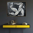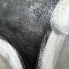 In this evocative painting, a solitary figure emerges from the muted tones of a grayscale palette against a black and gray backdrop. The central element of the composition is an abstract representation of a person, rendered in shades of subtle gray. The figure, with its undefined features, becomes a universal symbol, allowing viewers to project their own emotions and interpretations onto the canvas.