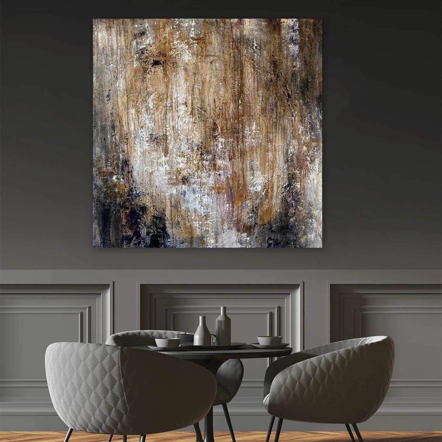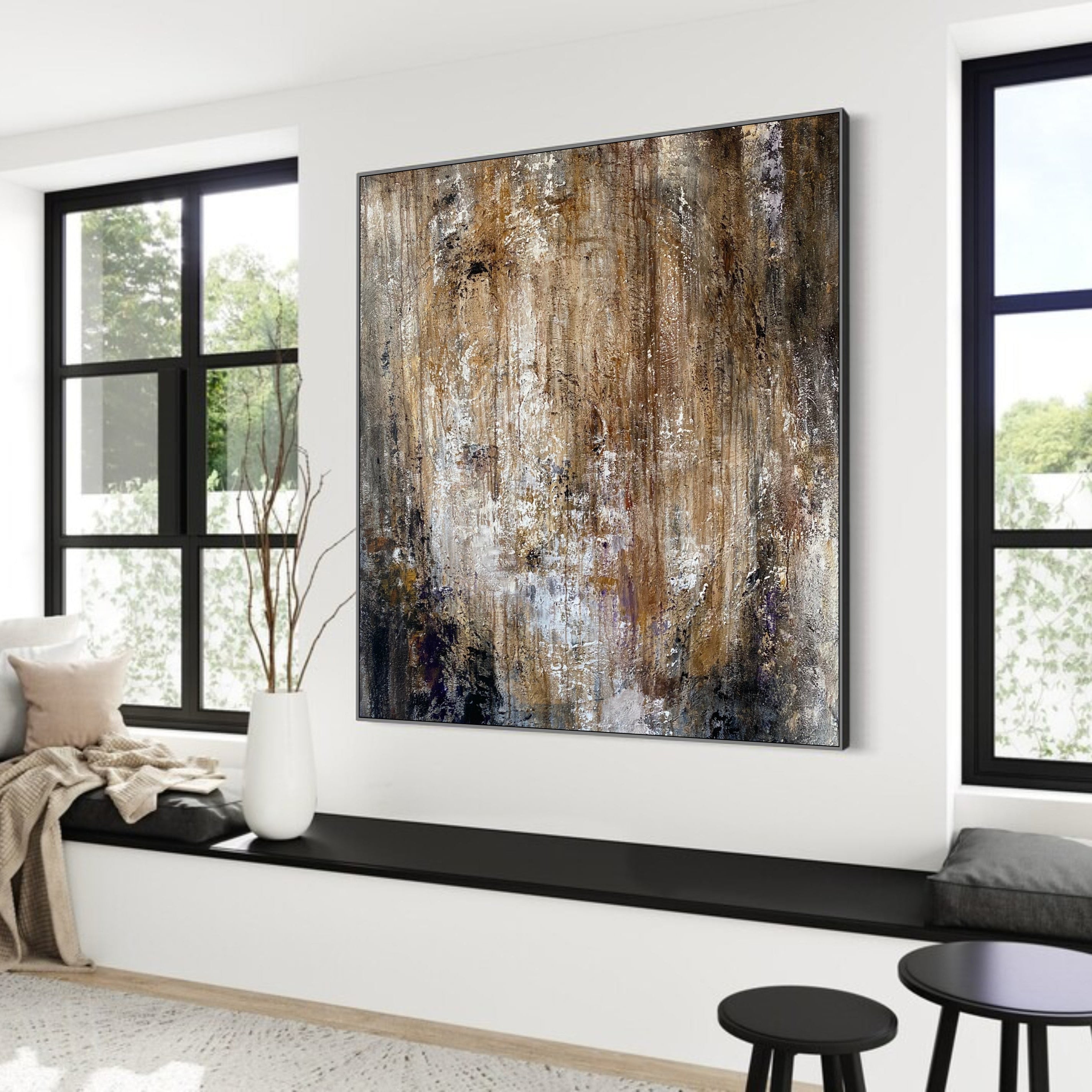 "Gilded Layers" is a captivating large abstract painting that brings warmth and luxury to any space. Featuring rich textured layers with metallic accents, this artwork blends earthy tones of bronze, gold, silver, and black to create a sophisticated piece. The intricate details and shimmering highlights make it a perfect addition to modern or contemporary interiors. Enhance your living space with this unique, original artwork that embodies the essence of abstract elegance.