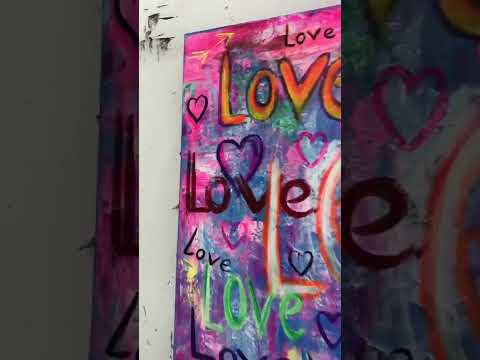 Vibrant, joyful, and full of personality — this colorful abstract painting is a bold celebration of love. Layered with vivid pinks, blues, yellows, and multicolored "LOVE" inscriptions, the artwork radiates energy and positivity.