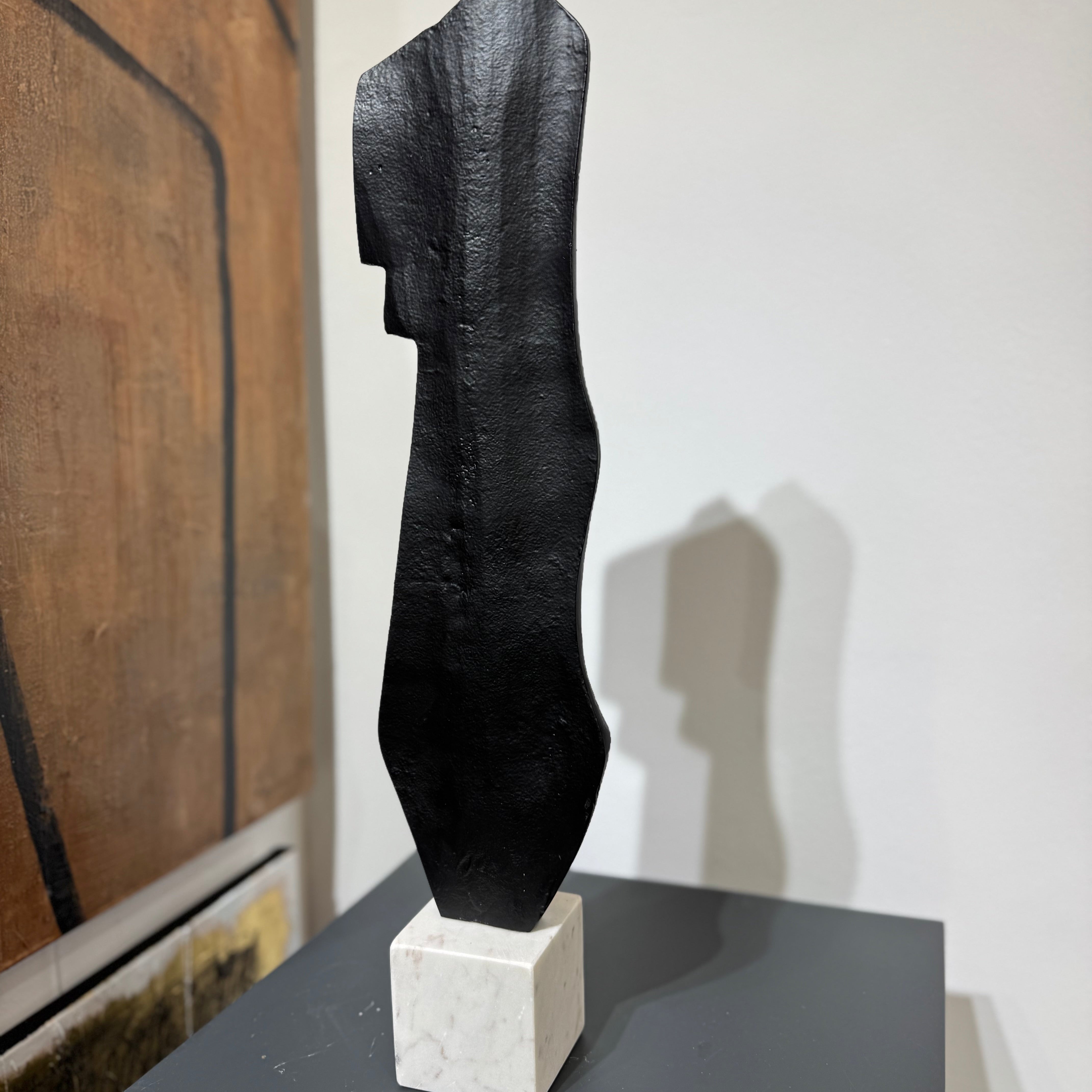 Crafted for lovers of sharp form and spatial tension, this modern black sculpture brings architectural edge to any space. A matte black silhouette rises with sculpted confidence from a polished white marble base—balancing brutalist expression with refined minimalism. Perfect for desktops, shelves, or gallery walls, it adds high-concept elegance to modern homes or offices seeking a bold, sculptural statement.