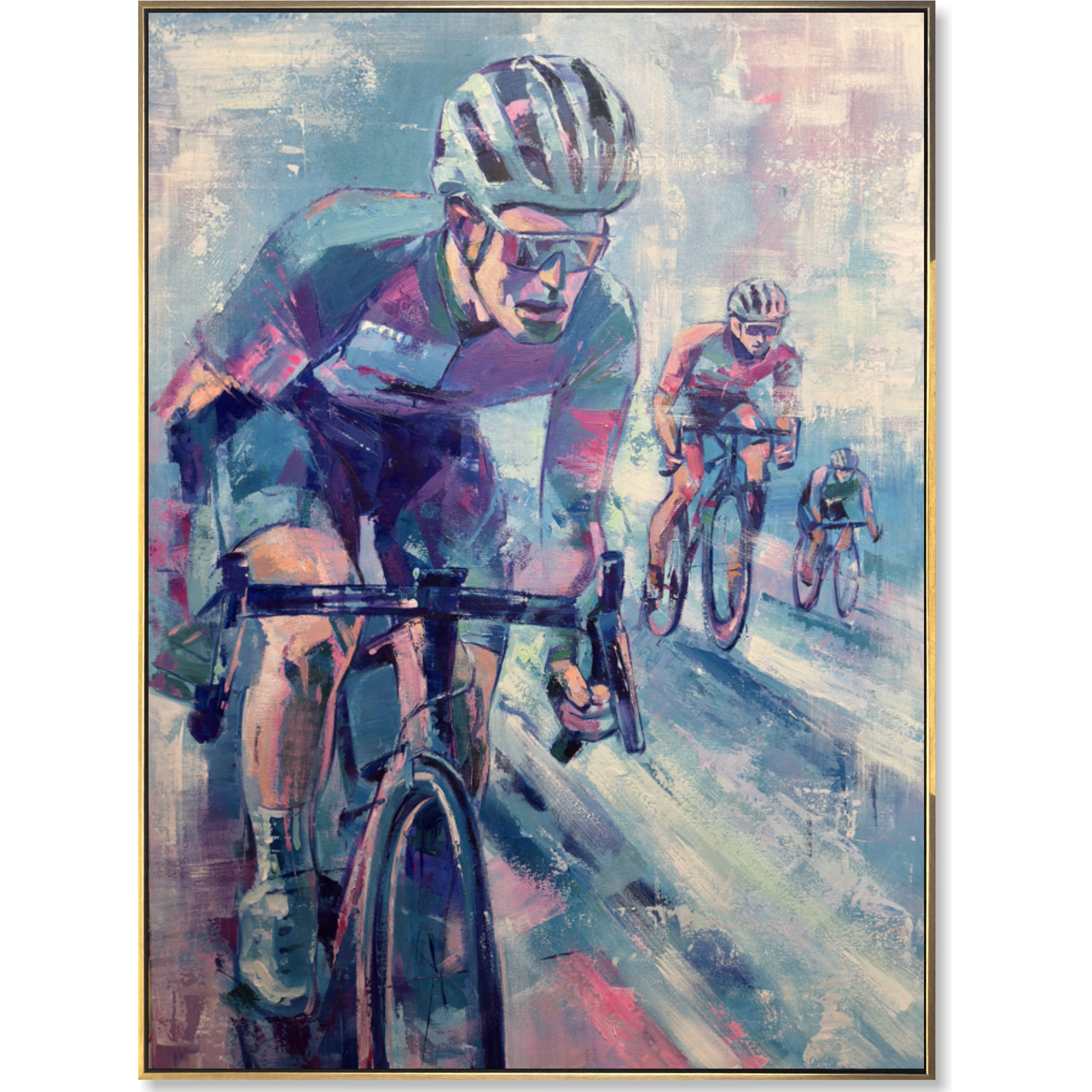 Hand-painted with acrylic on canvas, this large abstract cycling painting features electric blues, rich purples, and vibrant magenta in an impressionist aesthetic. Ideal for modern living rooms, gyms, or sports enthusiasts’ creative spaces, it adds motion, energy, and a bold sense of competitive spirit. Crafted by Trend Gallery – trusted by designers worldwide.