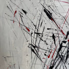 This dynamic abstract painting features a striking interplay of black, white, and red strokes on a textured canvas, creating an expressive and modern centerpiece. Perfect for contemporary living rooms, offices, or bedrooms, its bold design conveys energy and movement, adding sophistication to any space. The minimalistic yet impactful composition complements neutral and modern decor, making it a versatile choice for art enthusiasts. Elevate your interior with this captivating piece.