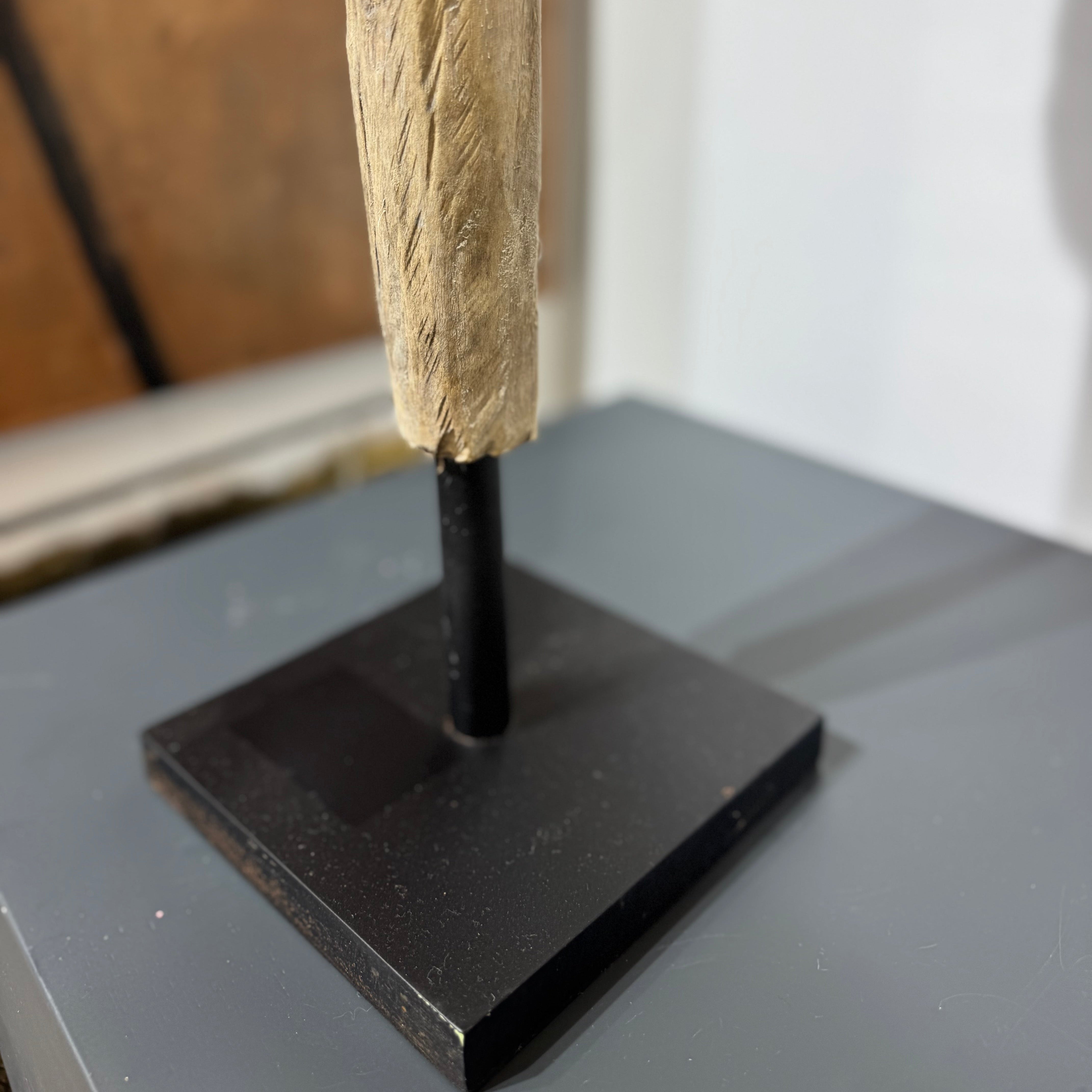 Bring cultural depth and organic beauty into your space with this tribal-inspired wooden sculpture. Carved with raw, emotive lines and mounted on a sleek black base, this figure evokes ancestral symbolism and timeless craftsmanship. Ideal for eclectic, earthy interiors, this piece stands tall as a focal point on consoles, shelves, or gallery walls. A conversation starter rooted in global heritage—perfect for collectors and style-setters alike.