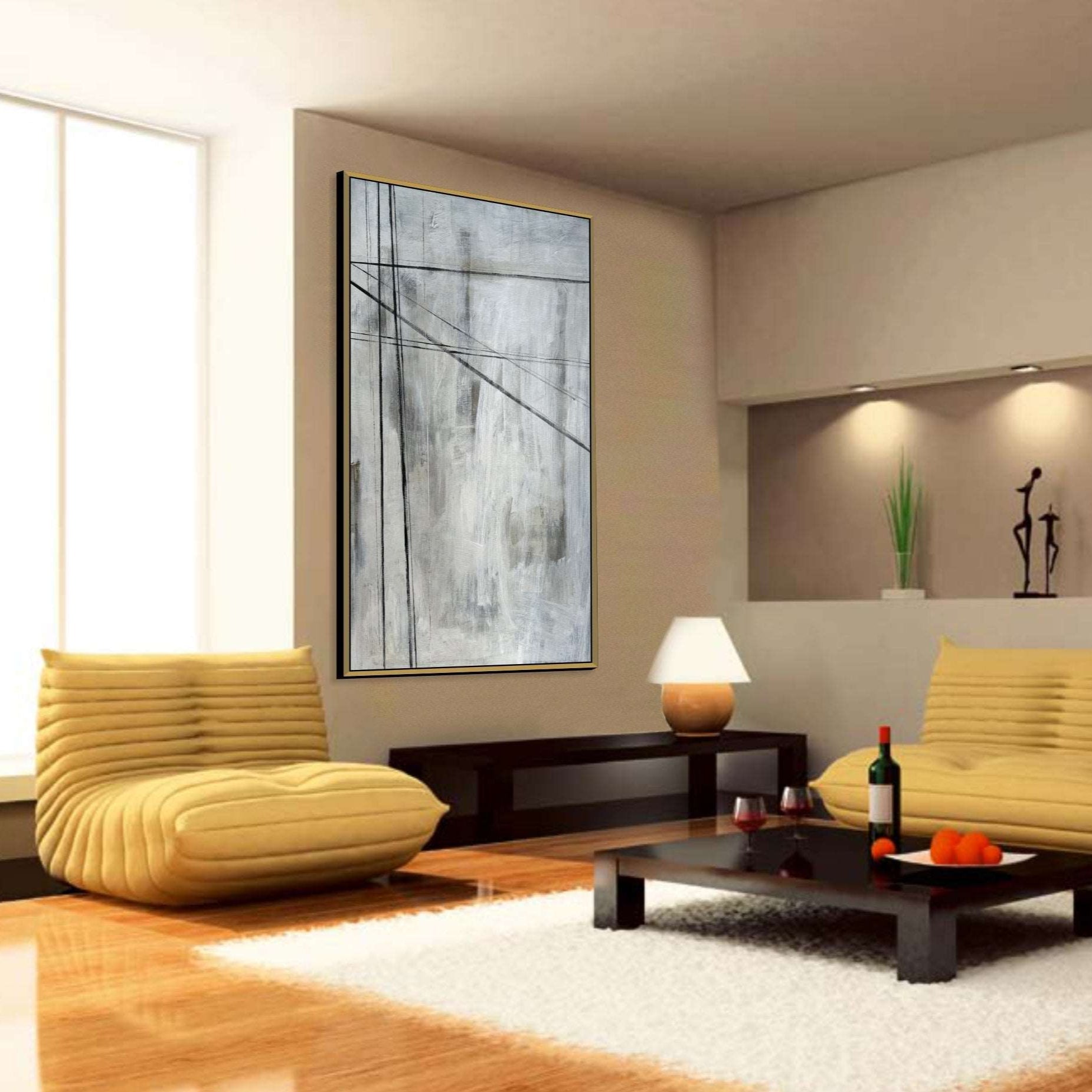 Introduce a touch of modern elegance to your space with this large abstract canvas painting. Featuring minimalist geometric lines and a sophisticated monochromatic palette of black, white, and gray, this piece is perfect for contemporary interiors. Its industrial aesthetics and subtle elegance make it a versatile addition to any room, blending seamlessly with modern decor. Ideal for those seeking to elevate their home or office with a unique piece of art that exudes style and refinement.