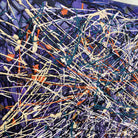 This stunning abstract oil and acrylic painting depicting a web of lines is an exquisite piece of art that will add a touch of sophistication to any space. The picture is filled in cold tones of slate-blue color, creating a calming and tranquil atmosphere.
