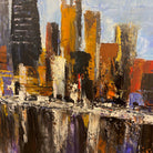 Bring the energy of the city into your home with "City Afterglow," a bold and expressive abstract cityscape that captures the vibrant spirit of urban life bathed in the warm glow of dusk. This striking artwork features a dynamic skyline rendered in rich, layered textures and vivid brushstrokes. Deep blacks and luminous golds contrast with soft pastels and cool blues, creating a breathtaking interplay of light and shadow.