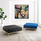 "Wild Deer" is a striking portrait that captures the majesty and serene presence of a deer in its natural habitat. The artist employs a vibrant palette of soft pastels and bold hues to bring the deer's features to life, emphasizing its alert eyes and graceful antlers. The background, a blend of abstract strokes and splashes of color, creates a dynamic contrast that highlights the deer's calm and steady demeanor. The interplay of light and shadow across its form adds depth and dimension, making the animal appear almost lifelike. This painting beautifully conveys the essence of wilderness and the quiet strength of one of nature's most elegant creatures, inviting the viewer to connect with the untamed beauty of the wild.