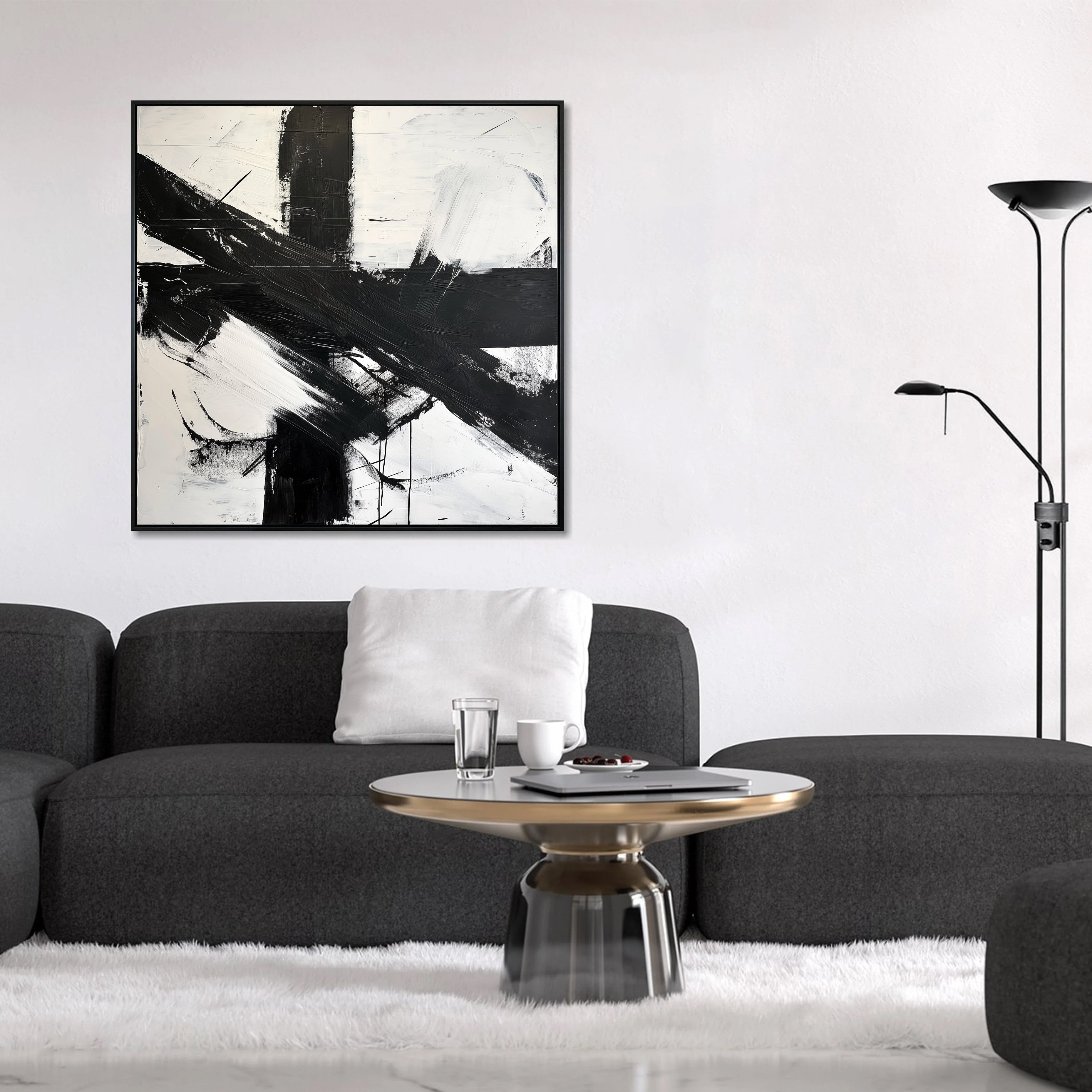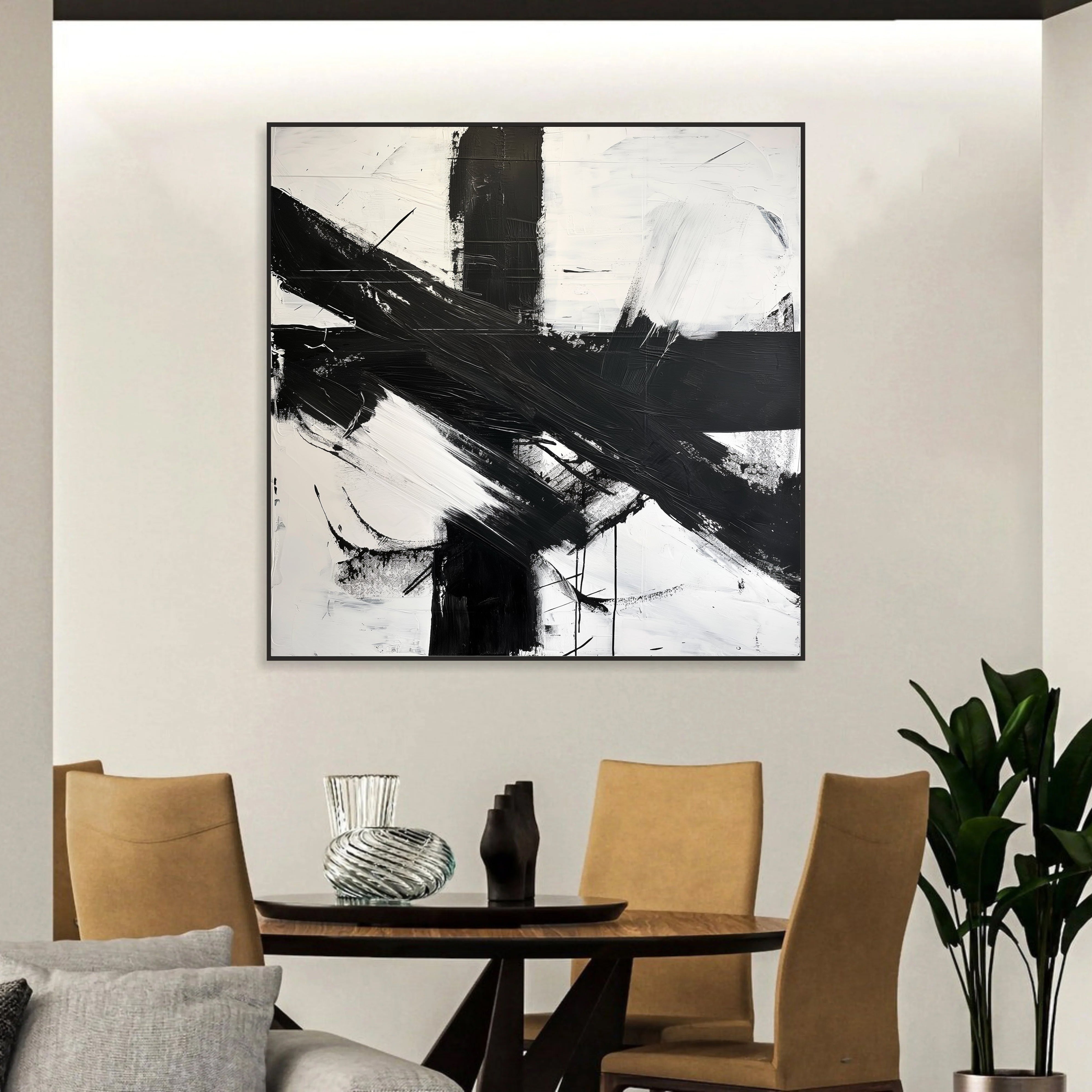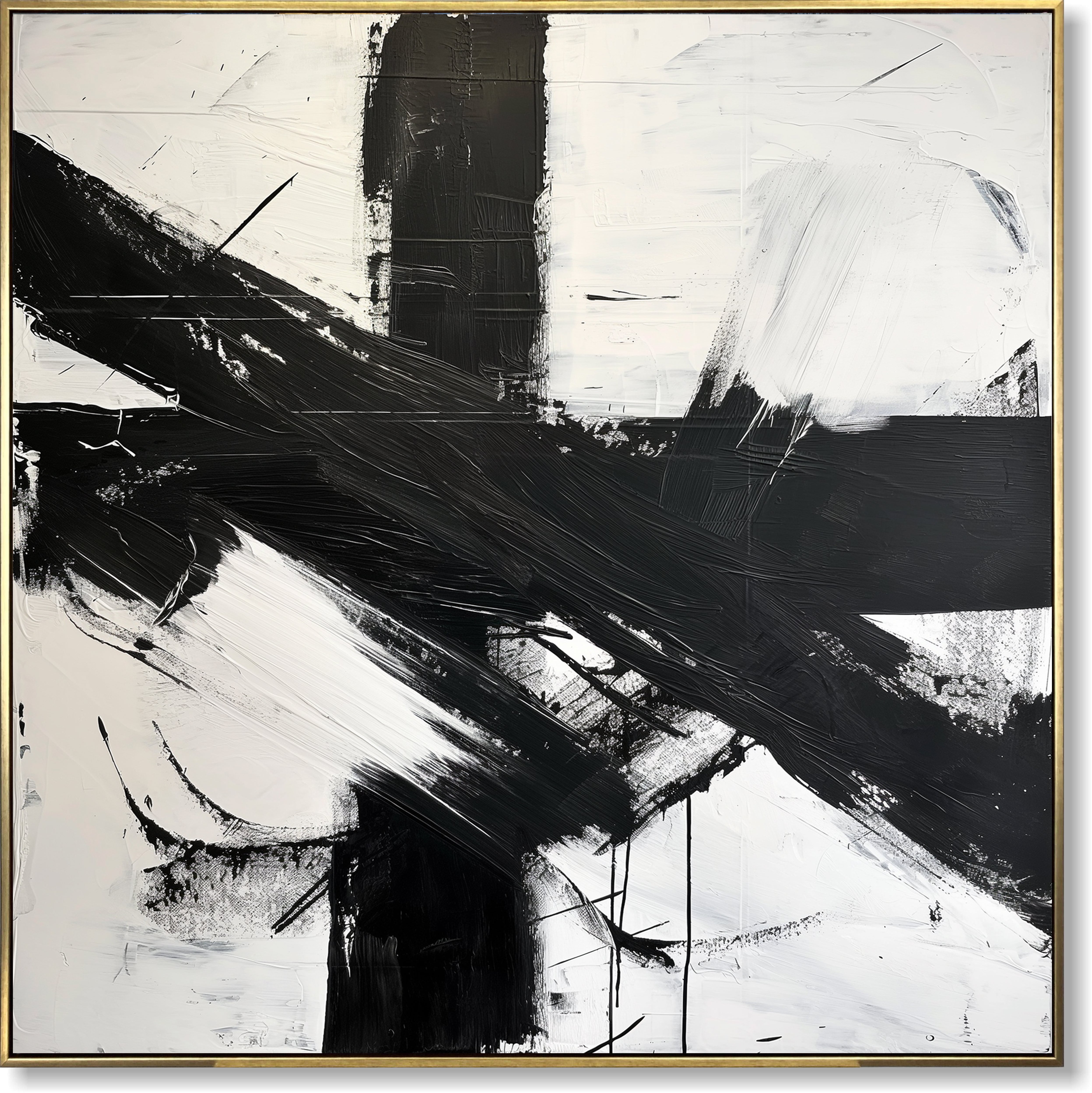Make a bold statement with this modern black and white abstract painting. Featuring energetic brushstrokes and rich texture, this minimalist canvas art adds dramatic contrast to contemporary spaces. Ideal for living rooms, offices, or art-forward interiors, it’s a striking piece for lovers of monochrome expression. Hand-painted and gallery-wrapped, it's ready to hang and designed to transform your space with depth and style.