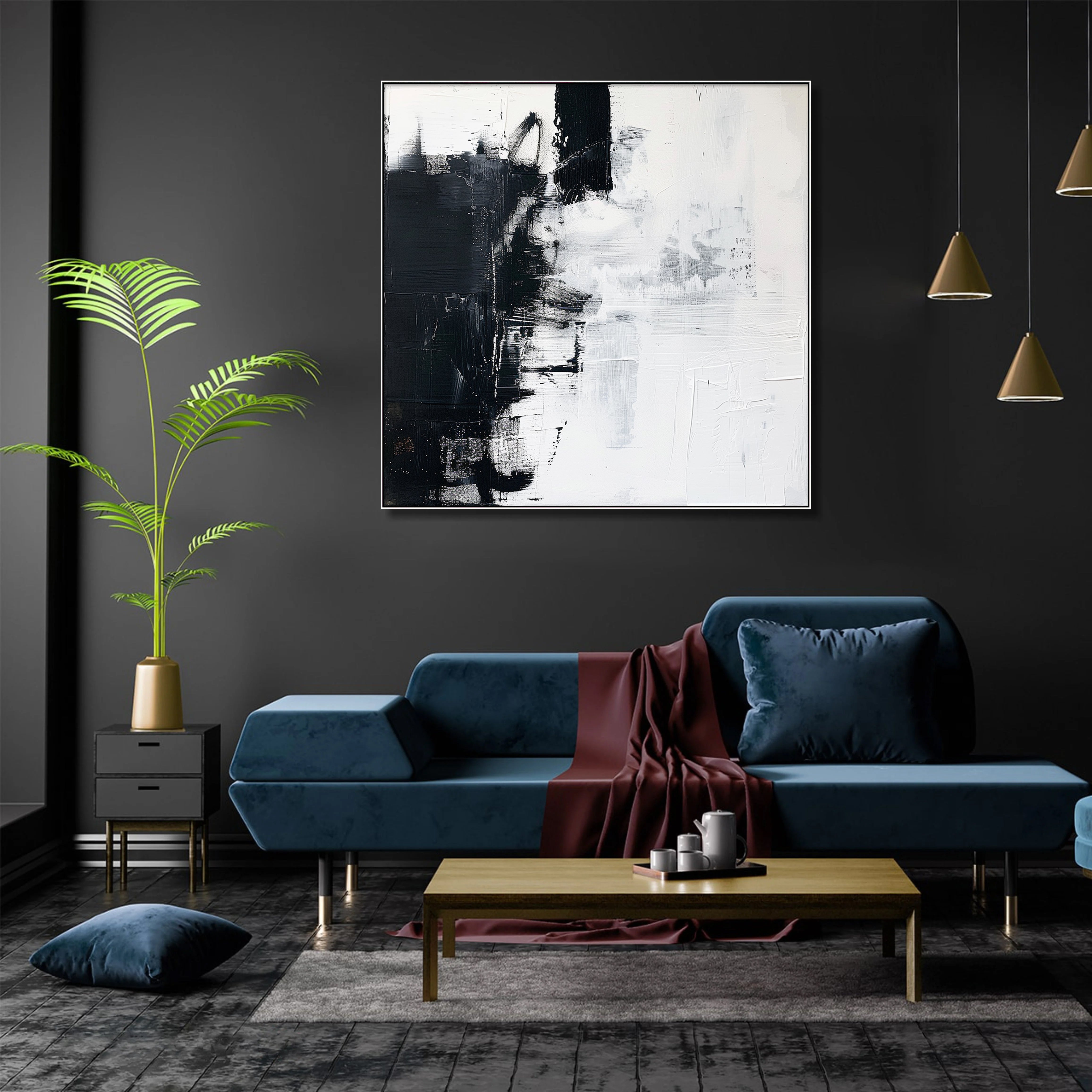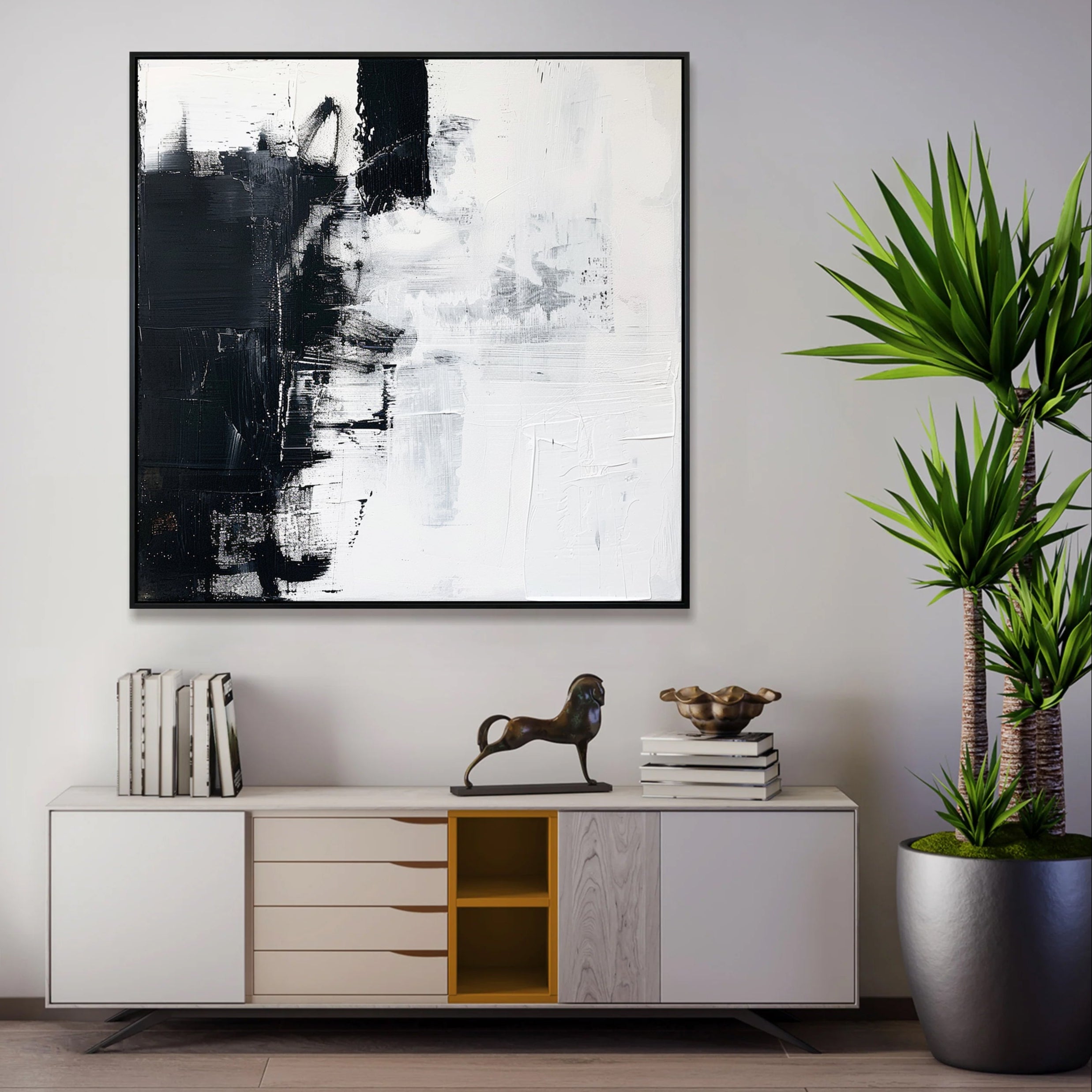 Elevate your interior with this bold black and white abstract painting. With rich texture and dynamic brushwork, this minimalist wall art blends effortlessly into modern and monochrome decor. A perfect piece for living rooms, bedrooms, or office walls, it evokes both movement and calm. Ideal for those who love gallery-style design and modern elegance. Ready to hang and crafted for lasting impact, this artwork adds sophistication to any space.