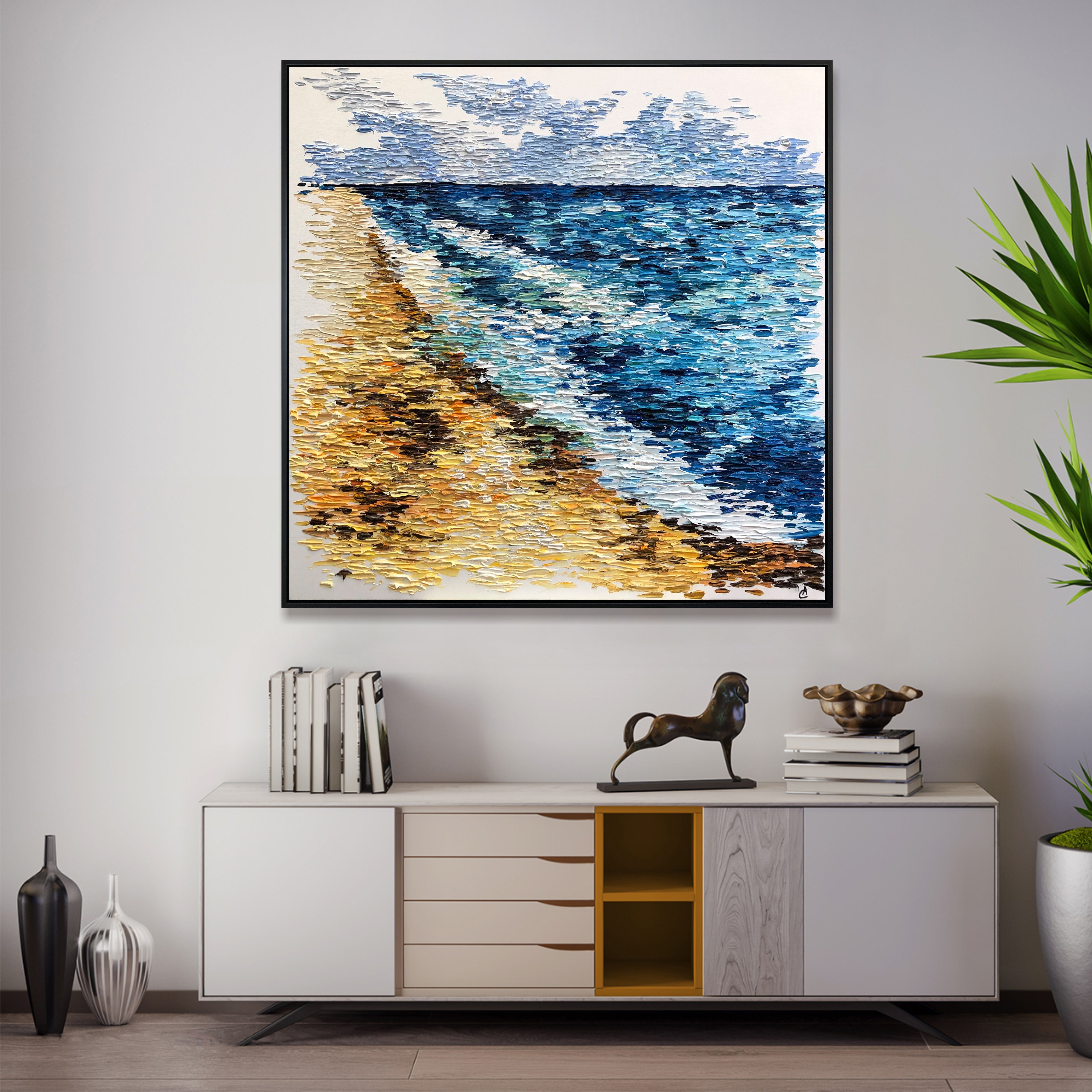 Before purchasing, we can help you visualize the artwork in your space for FREE, so you can feel confident in your choice! Simply send us a photo of your wall, and our designers will use graphic software to show you how the painting will look in your interior.