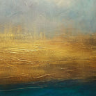 This ocean painting was inspired by the sunset over the sea horizon. Imagine last sunbeams reflect in the sea waves and light up the sky, the dark shadows are starting to appear in the waves and all nature is going to dive deeply into sleep. But the light always comes after the darkness, and this natural cycle is telling us about all the good things that will happen again even if now we don't feel very well. The artist depicted the ocean in deep blue, navy, and green colors and combined them with a light color of the sky and amber color of the setting sun. This original abstract art would be an amazing addition to your space.