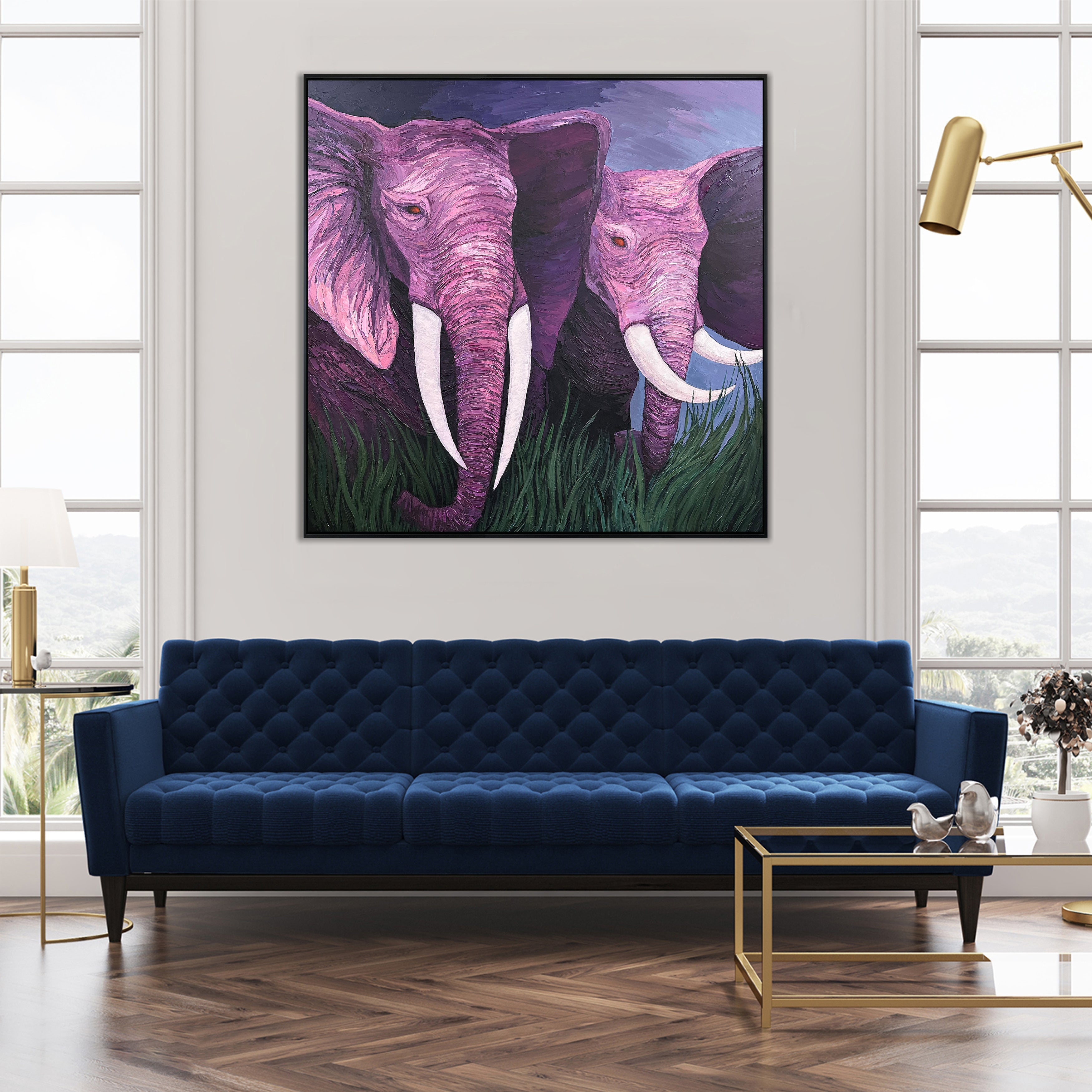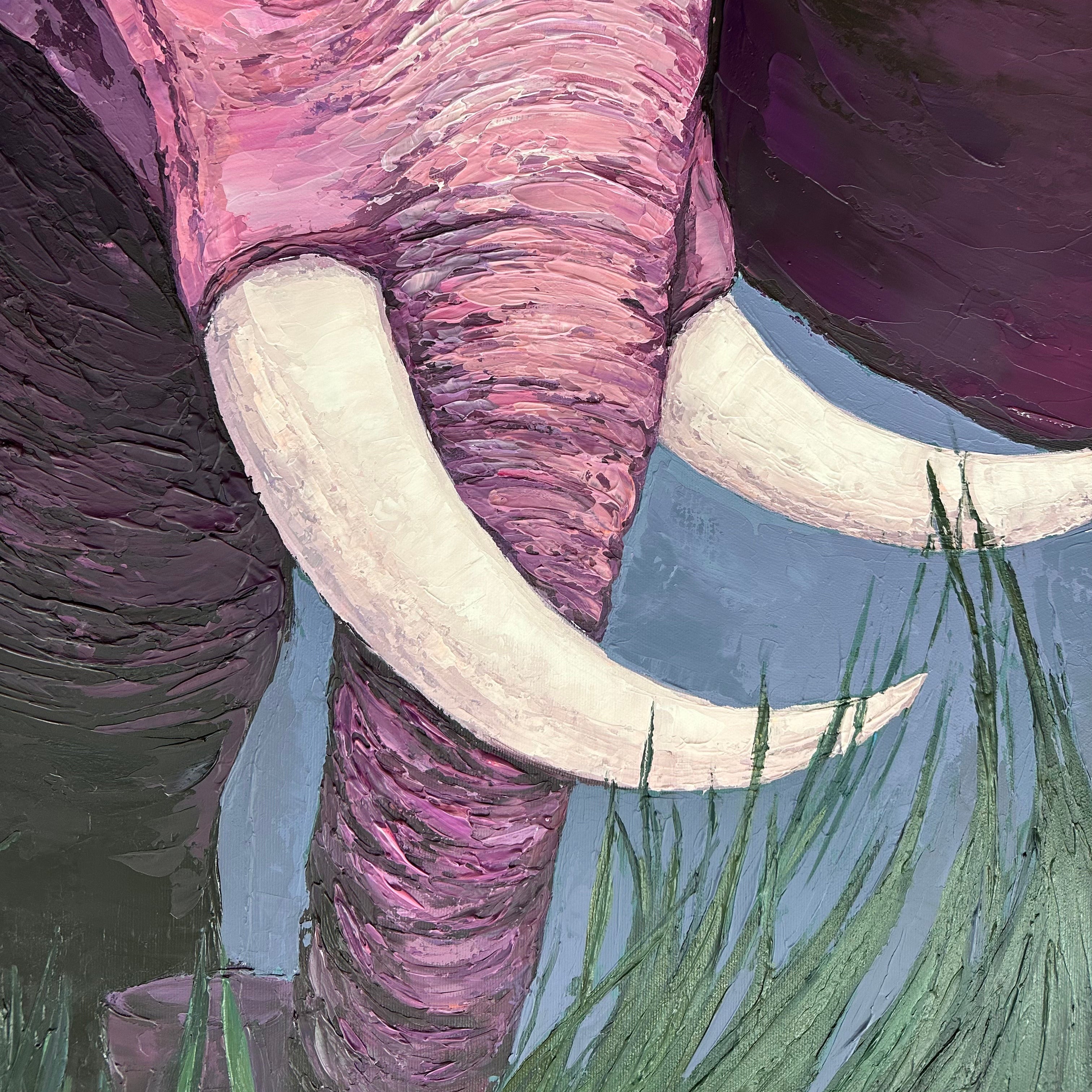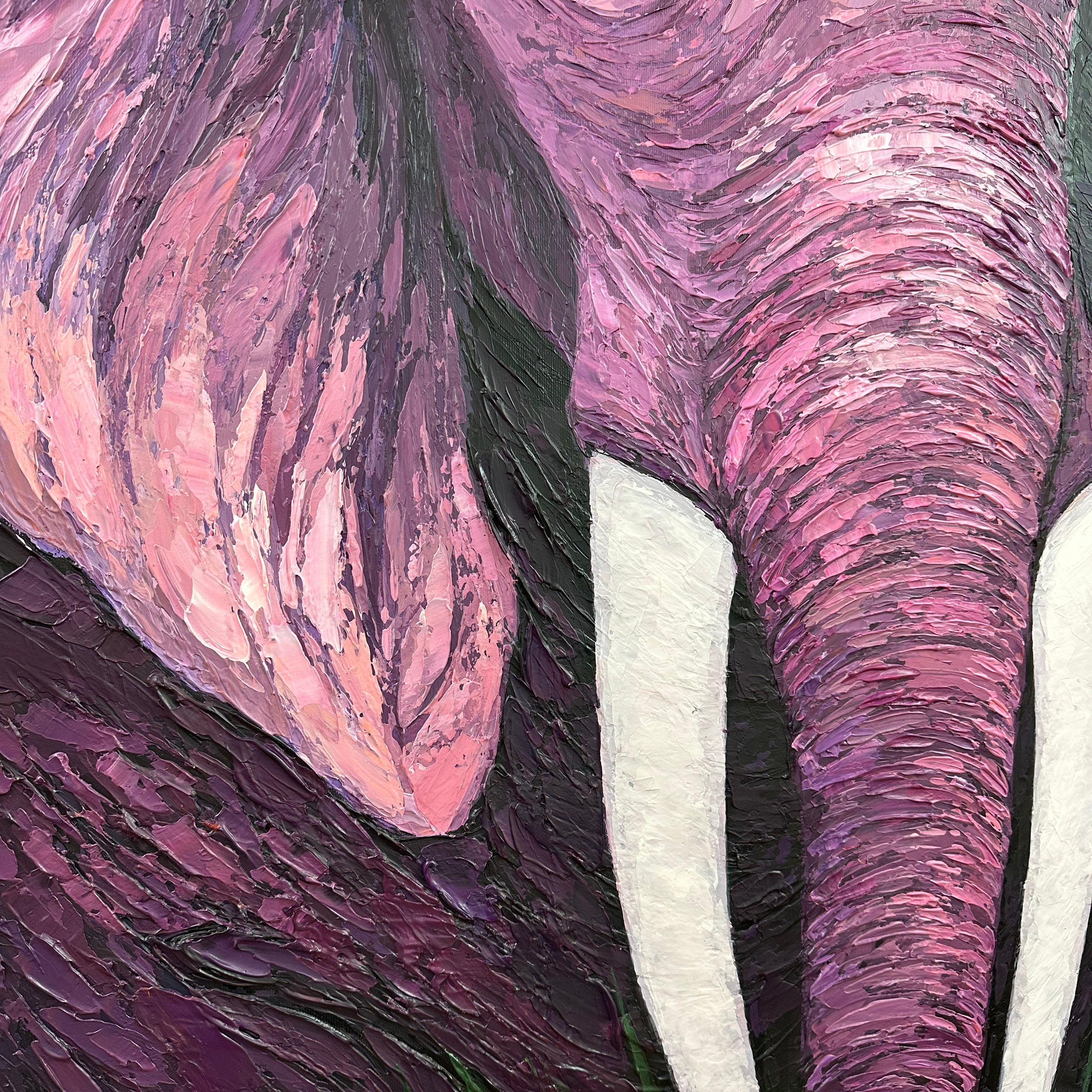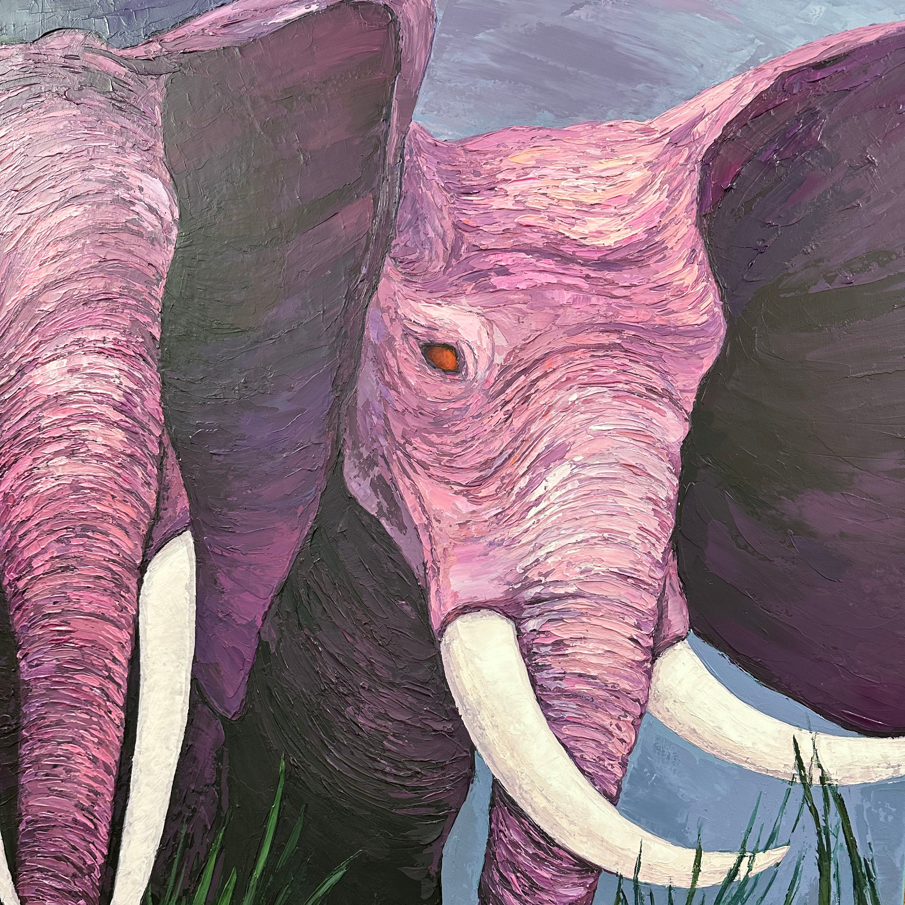 Majestic pink-purple elephant portrait with glowing texture and wise, intense eyes. A powerful yet calm focal point—bring gentle strength to your space today.
