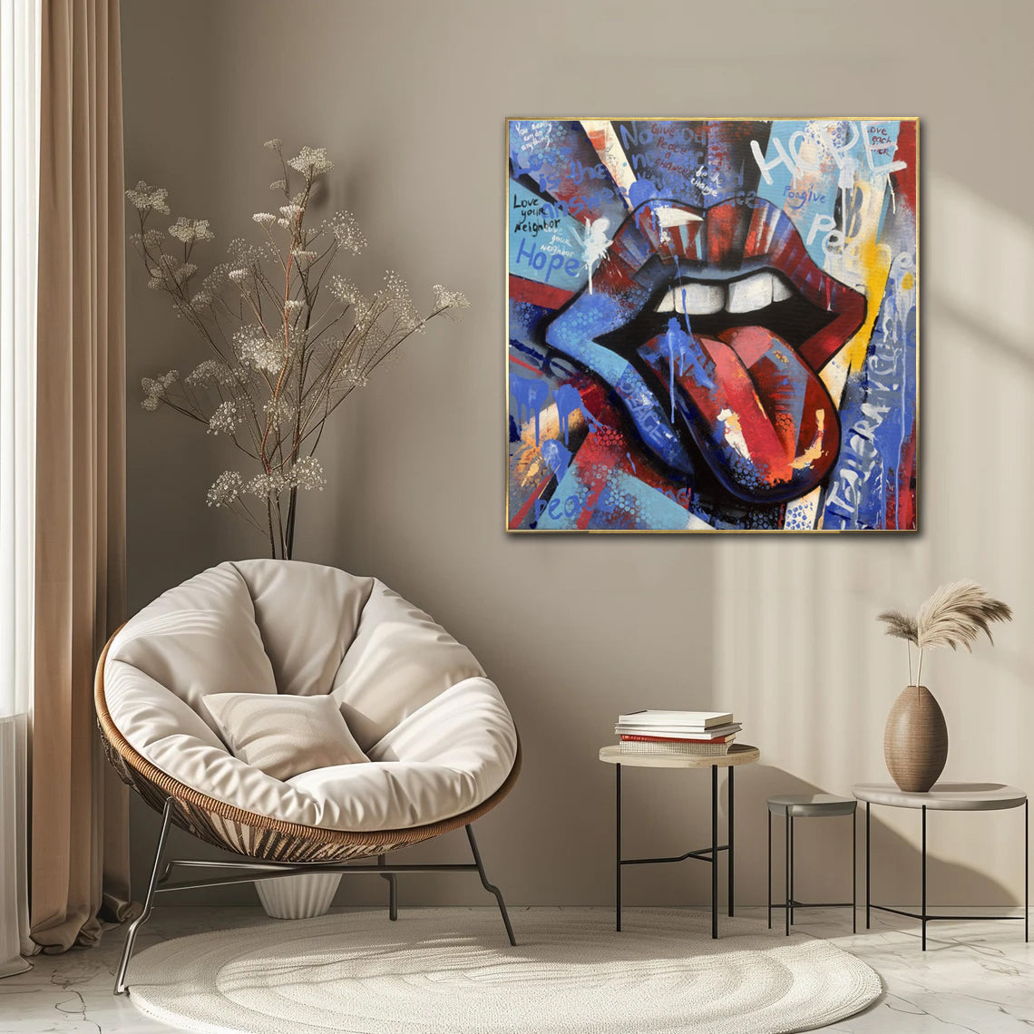 Expressive large pop art lips painting with bold colors and street-style energy makes a powerful statement in modern interiors. Upgrade your wall now!