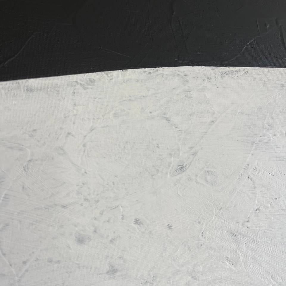 The black and white painting is a study in contrast and minimalism, with a single, bold red spot serving as the focal point. Against a background of deep, rich black, this large red spot commands attention