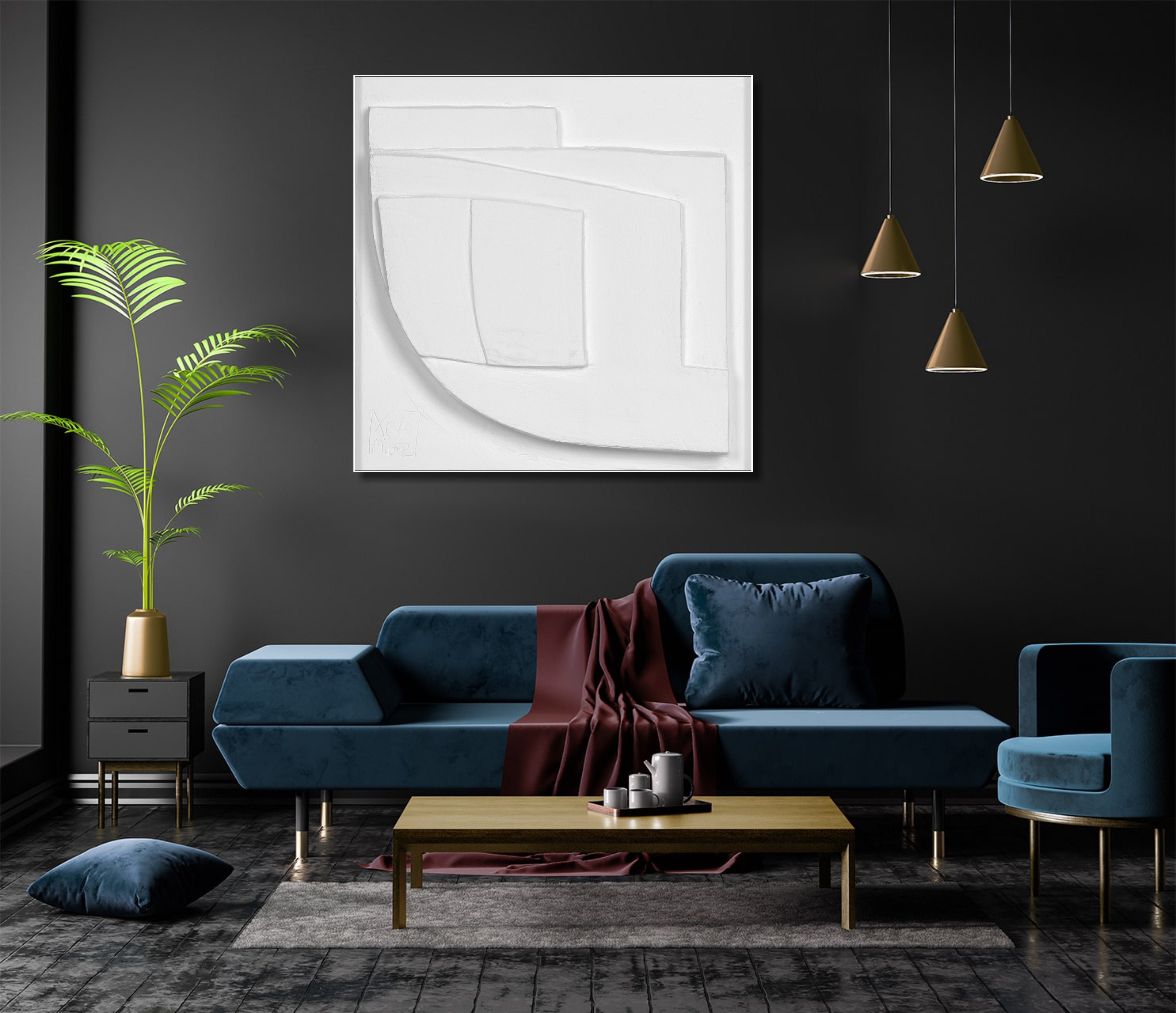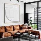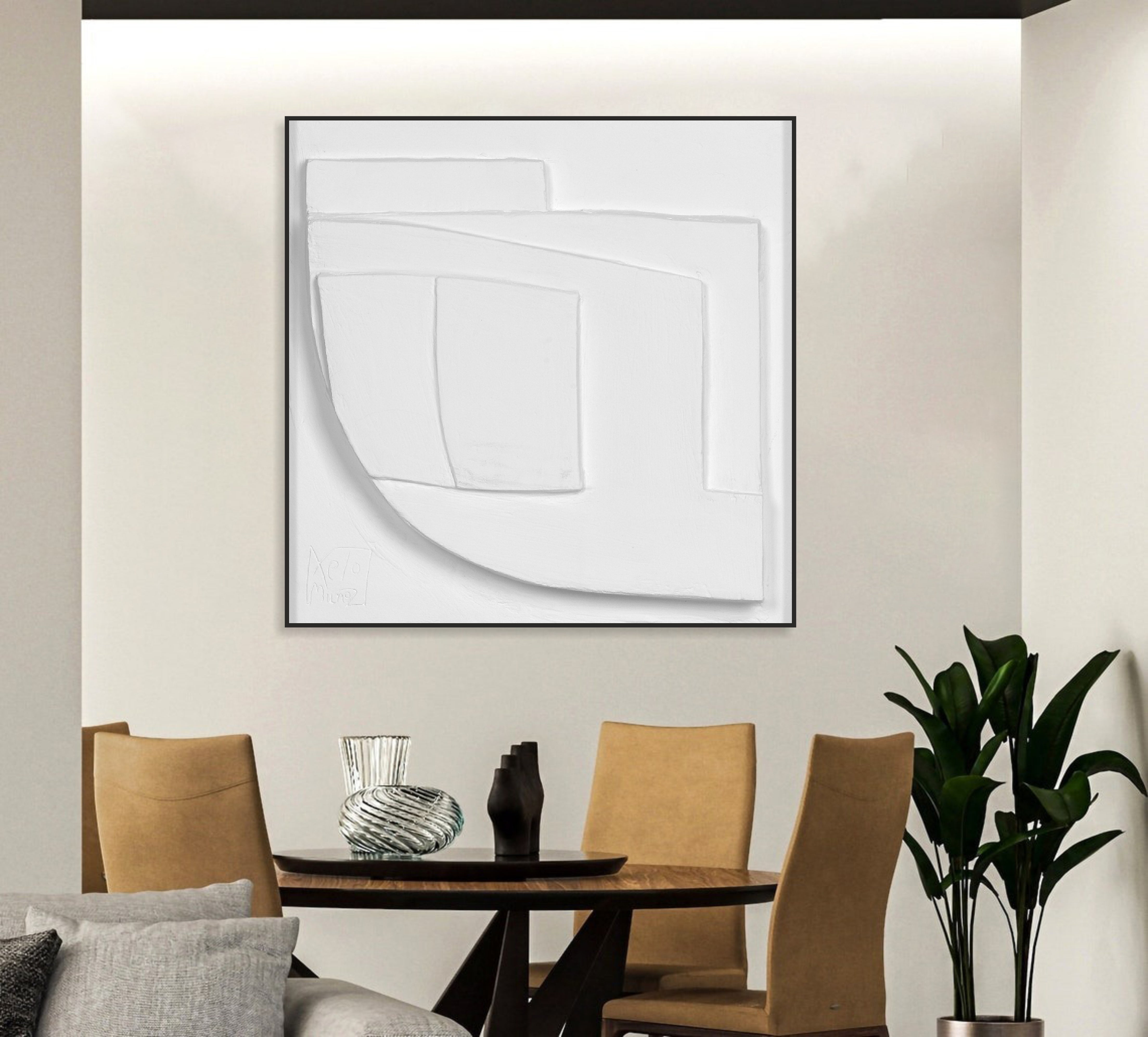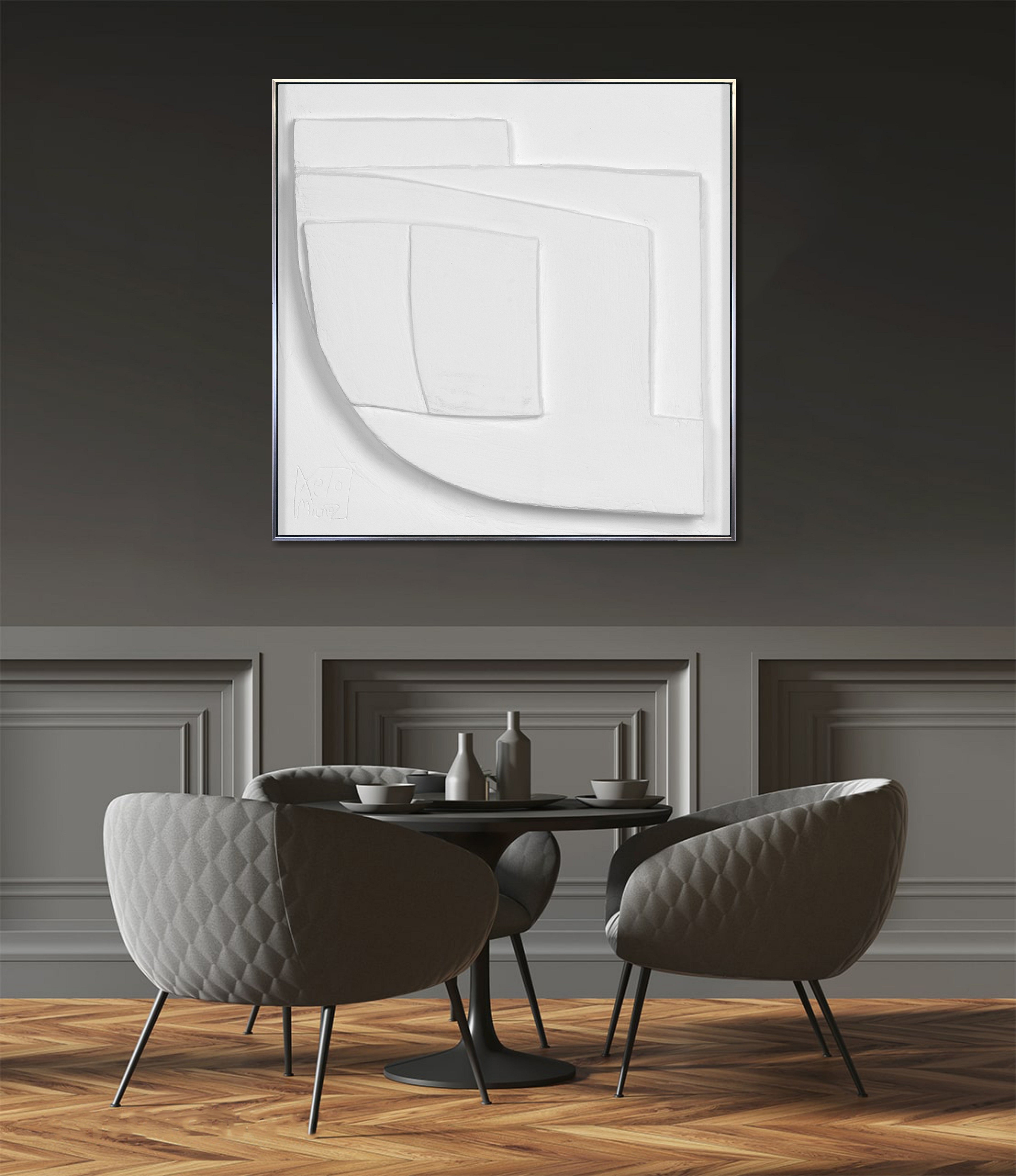 Add timeless elegance to your walls with this 3D minimalist geometric wall art "Balance Motion". Featuring textured layers in a neutral white tone and accented by a sleek gold frame, this piece brings a refined modern aesthetic to any space. Ideal for living rooms, offices, or bedrooms, it’s handcrafted with precision for a sophisticated touch. Available in custom sizes, this framed abstract artwork complements contemporary and minimalist decor styles.