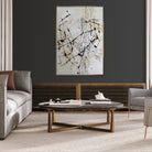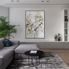 This abstract expressionist painting features bold black splatters and fine linear strokes against a textured white and beige background, creating a dynamic, modern statement piece. Inspired by Jackson Pollock’s fluid energy, this contemporary canvas brings movement and depth to any living space, office, or gallery wall. Its neutral tones make it versatile for minimalist, modern, or industrial interiors, offering a sophisticated yet expressive aesthetic.