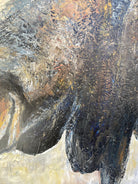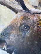 Capture the majestic beauty of nature with this stunning moose painting, featuring a rich textured background in earthy neutral tones. This hand-painted wildlife artwork brings rustic elegance to any home, cabin, or lodge-style interior. The deep blues, browns, and grays create a sophisticated and calming atmosphere, making it a perfect statement piece for a modern rustic living room, office, or nature-inspired space. Elevate your decor with this powerful yet serene depiction of the wilderness.
