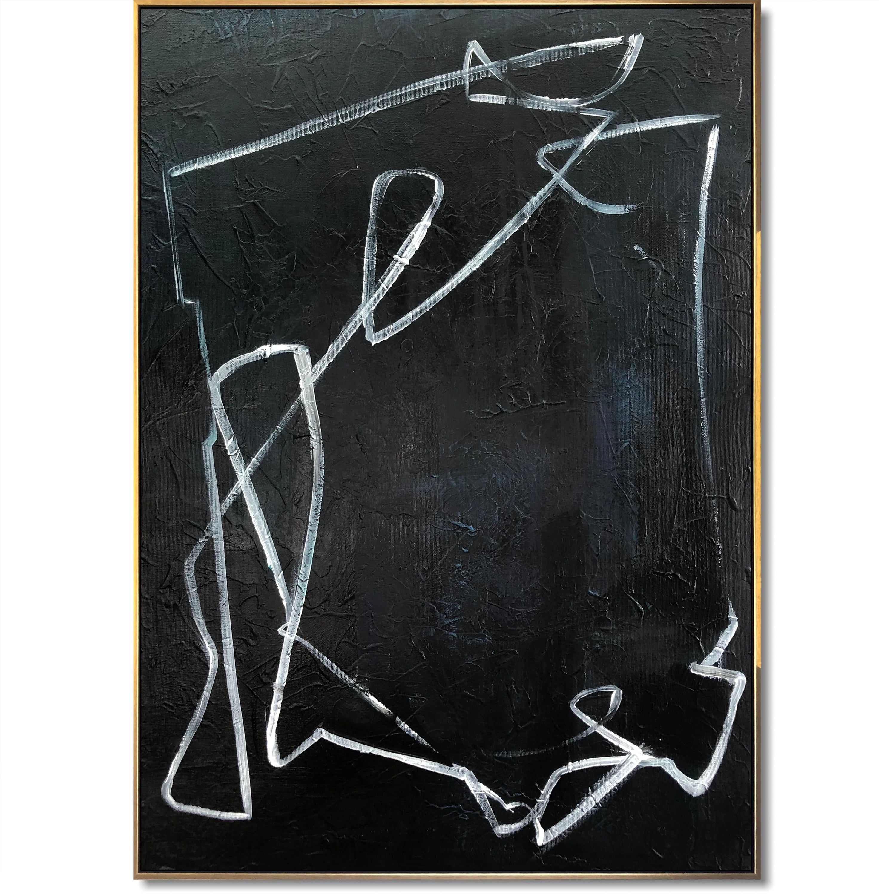 Immerse yourself in the sophisticated simplicity of "Linear Flow," an abstract black and white painting that captures the essence of modern minimalism. This artwork features dynamic white lines and geometric forms set against a textured black backdrop, creating a harmonious and visually striking piece. Perfect for lovers of contemporary and minimalist art, this painting adds a touch of modern elegance to any space. Embrace the beauty of abstract concepts and linear expression with this unique and stylish artwork.