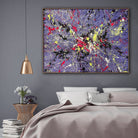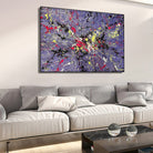 "Violet Splash" is an electrifying abstract piece that bursts with energy and vivid color. The canvas is dominated by a rich violet background, serving as the perfect stage for an explosive display of splattered paint in hues of red, yellow, black, and white. The dynamic splashes and drips create a sense of movement and chaos, drawing the viewer into the heart of the composition. This painting embodies the spontaneity and raw emotion of modern abstract art, inviting viewers to lose themselves in the vibrant, tumultuous sea of colors and textures. "Violet Splash" is a celebration of artistic freedom and the beauty of unrestrained creativity.