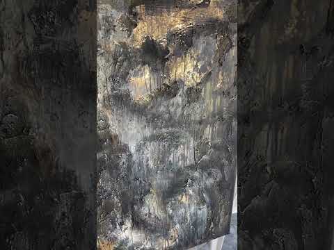 In this striking textured black painting adorned with golden leaf, a dramatic dance unfolds between darkness and opulence. The artist skillfully employs a rich, textured surface to create a captivating canvas that beckons viewers into a realm of tactile and visual exploration.